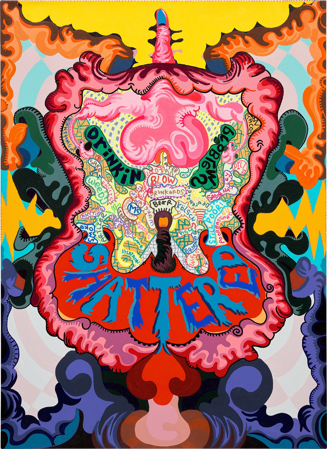 signed, titled and dated ""SHATTERED" Erik Parker. 2002 ERIK PARKER" on the overlap
