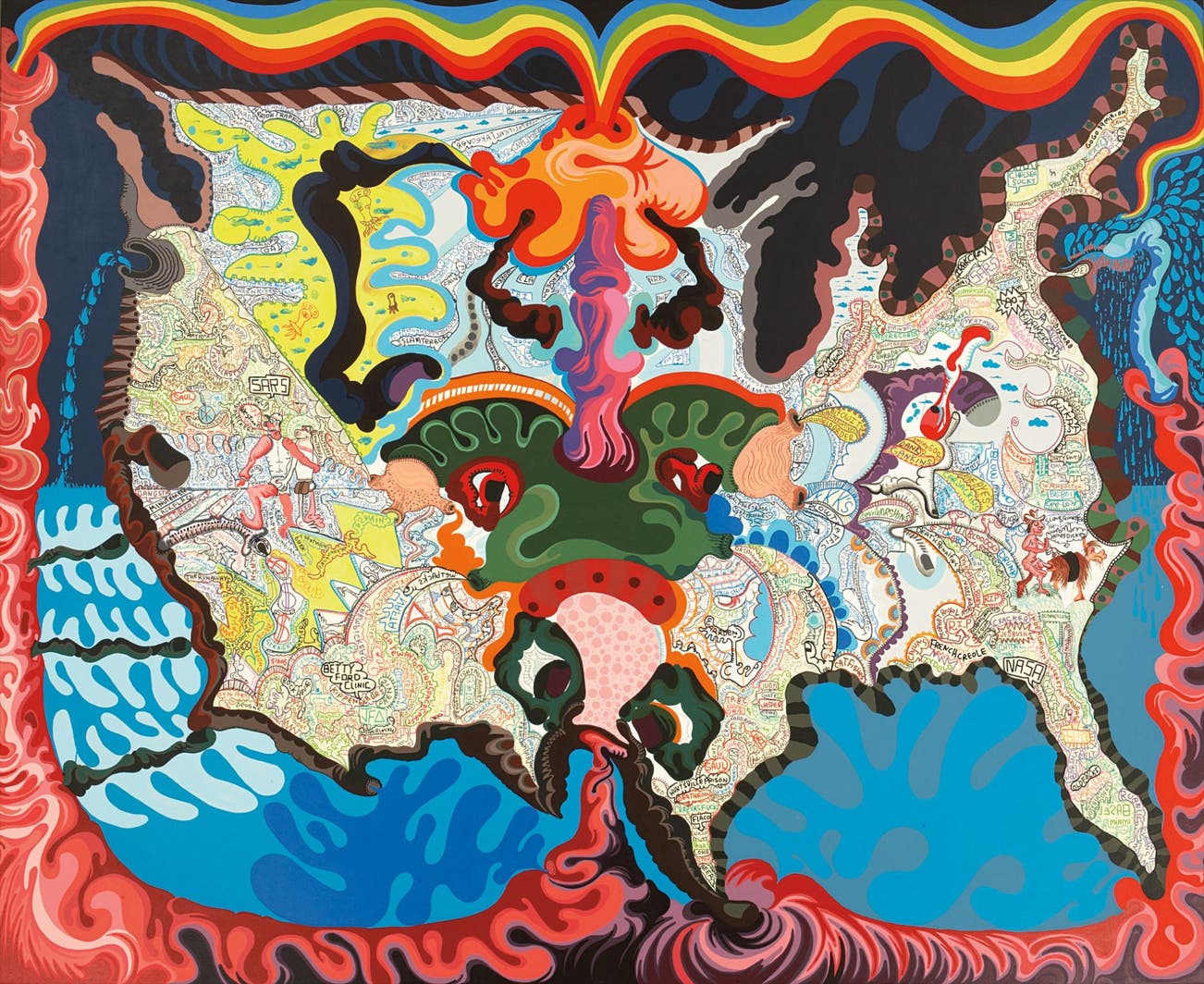 oil, felt-tip marker and acrylic on canvas