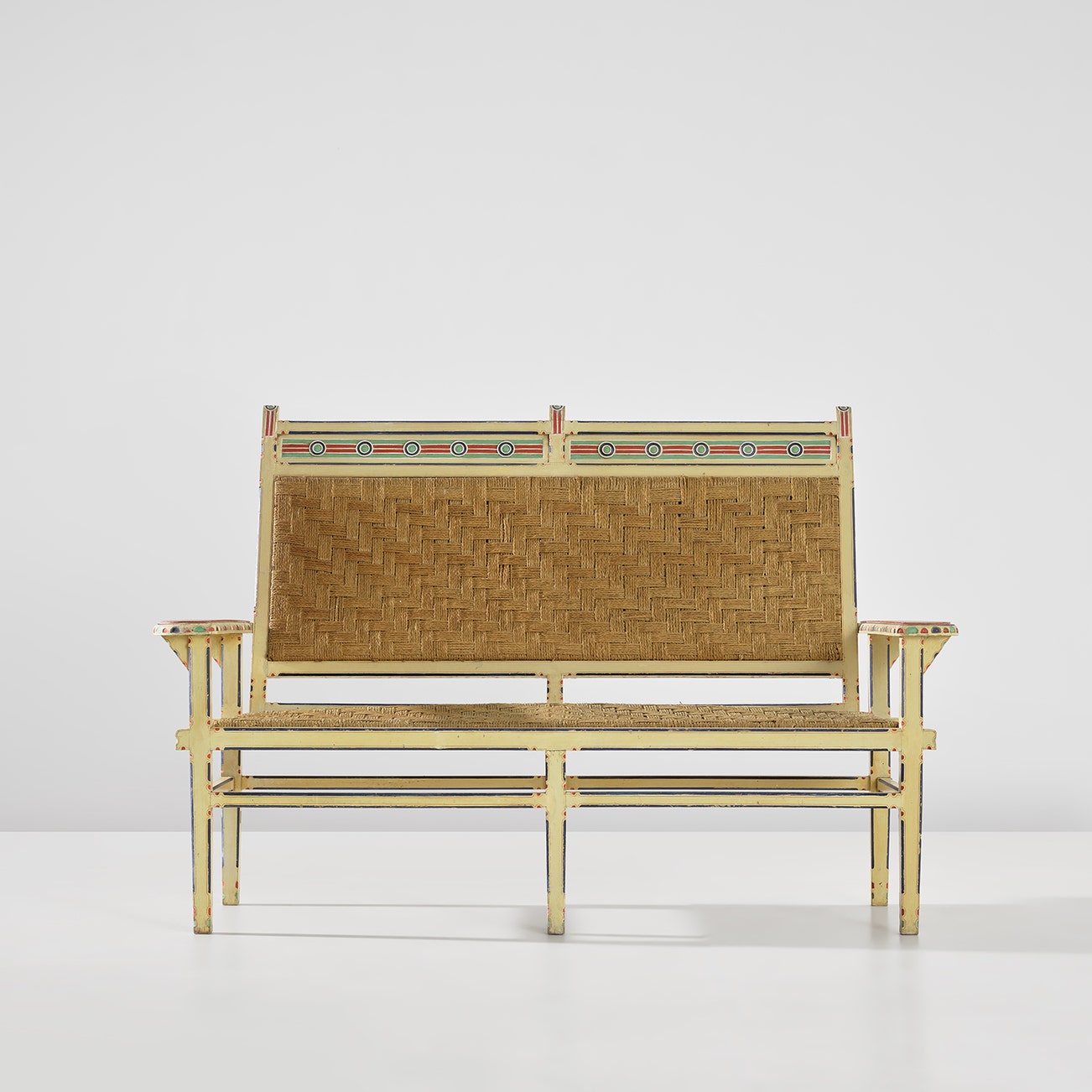 Painted wood, oak, rush.