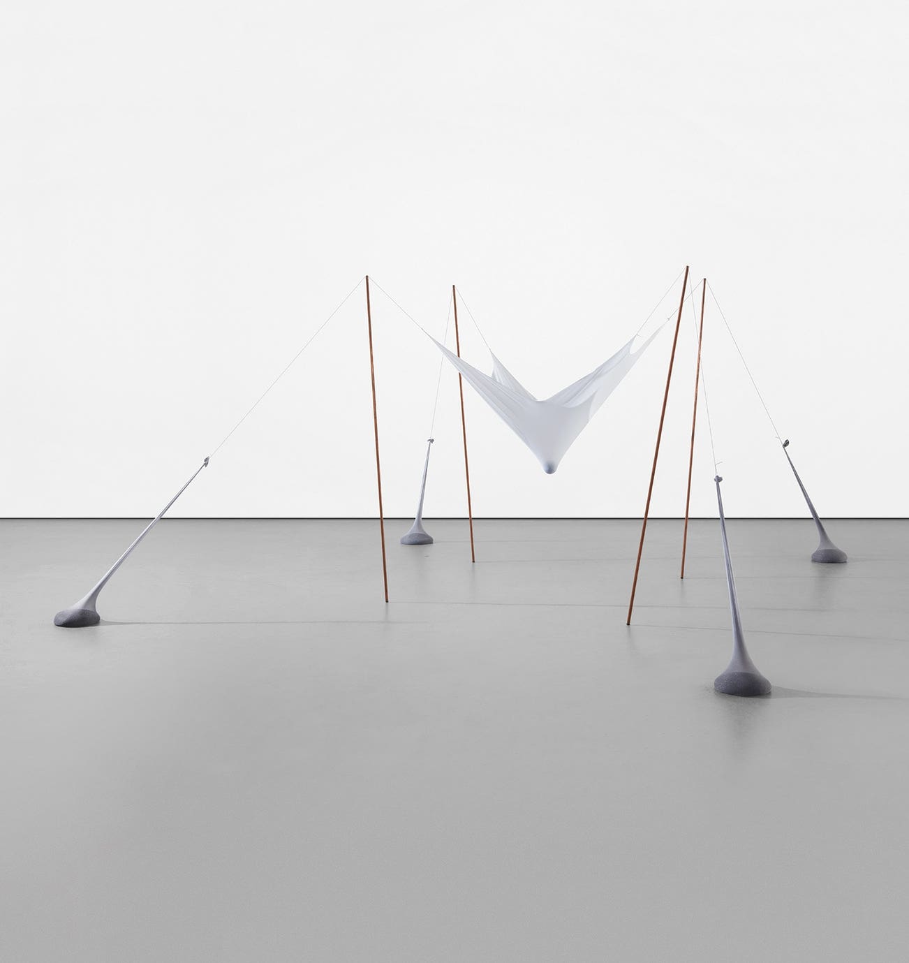 Brazilian | 1964Brazilian artist Ernesto Neto creates monumental installations and objects of diverse biomorphic shapes and forms that often occupy entire rooms. The works are primarily concerned with corporeality and visual seduction. Viewers are encouraged to participate with the works, and Neto engages the viewer's tactile and olfactory senses through different textures and scents, employing a myriad of synthetic non-traditional materials including nylon and polyamide fabrics, newspaper, nets and aromatic and boldly colored spices. Neto works around the space of the body, where the physical immersion into his works is like a continuation of his own body and mind.