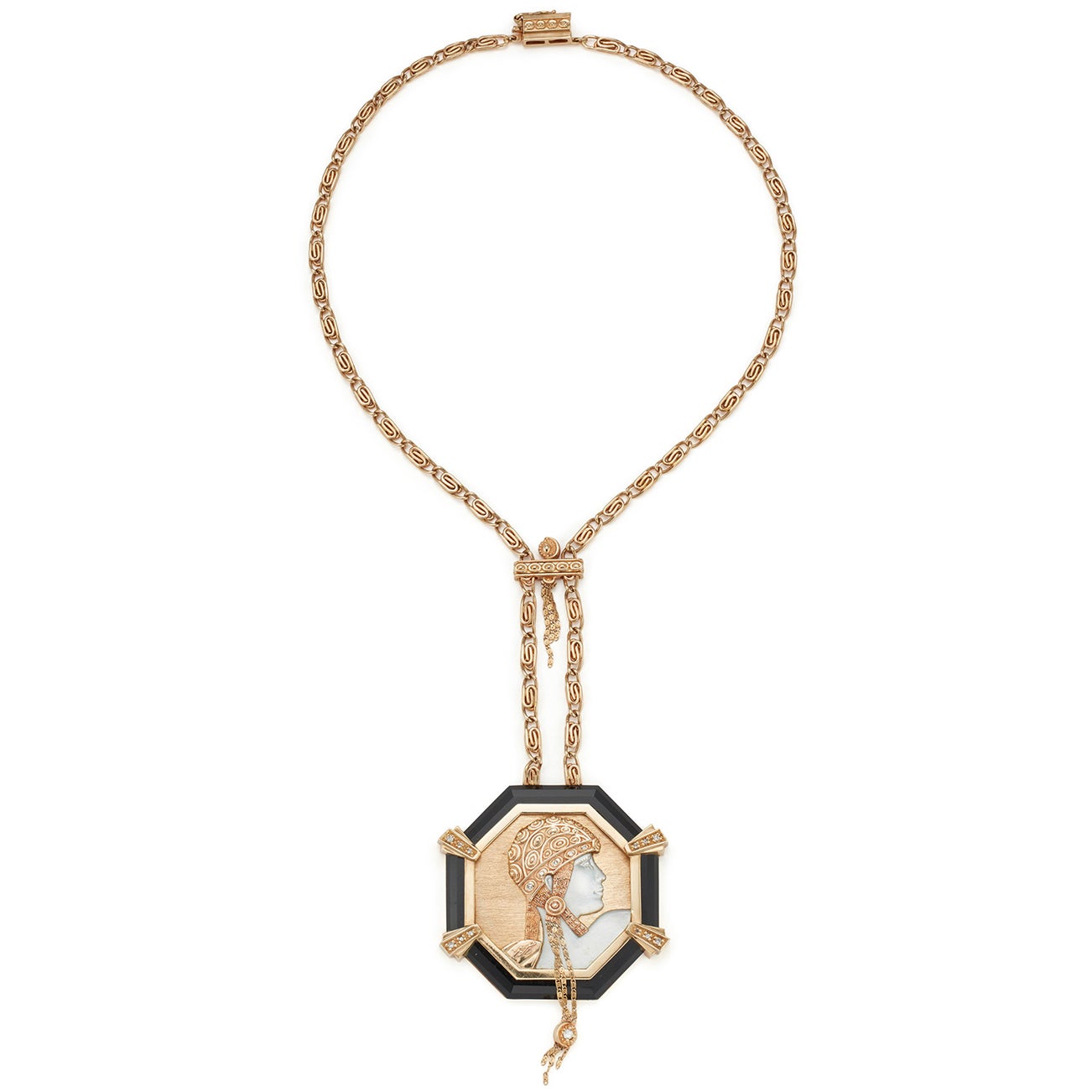 A Mother-of-Pearl, Onyx, Diamond, and Gold Necklace