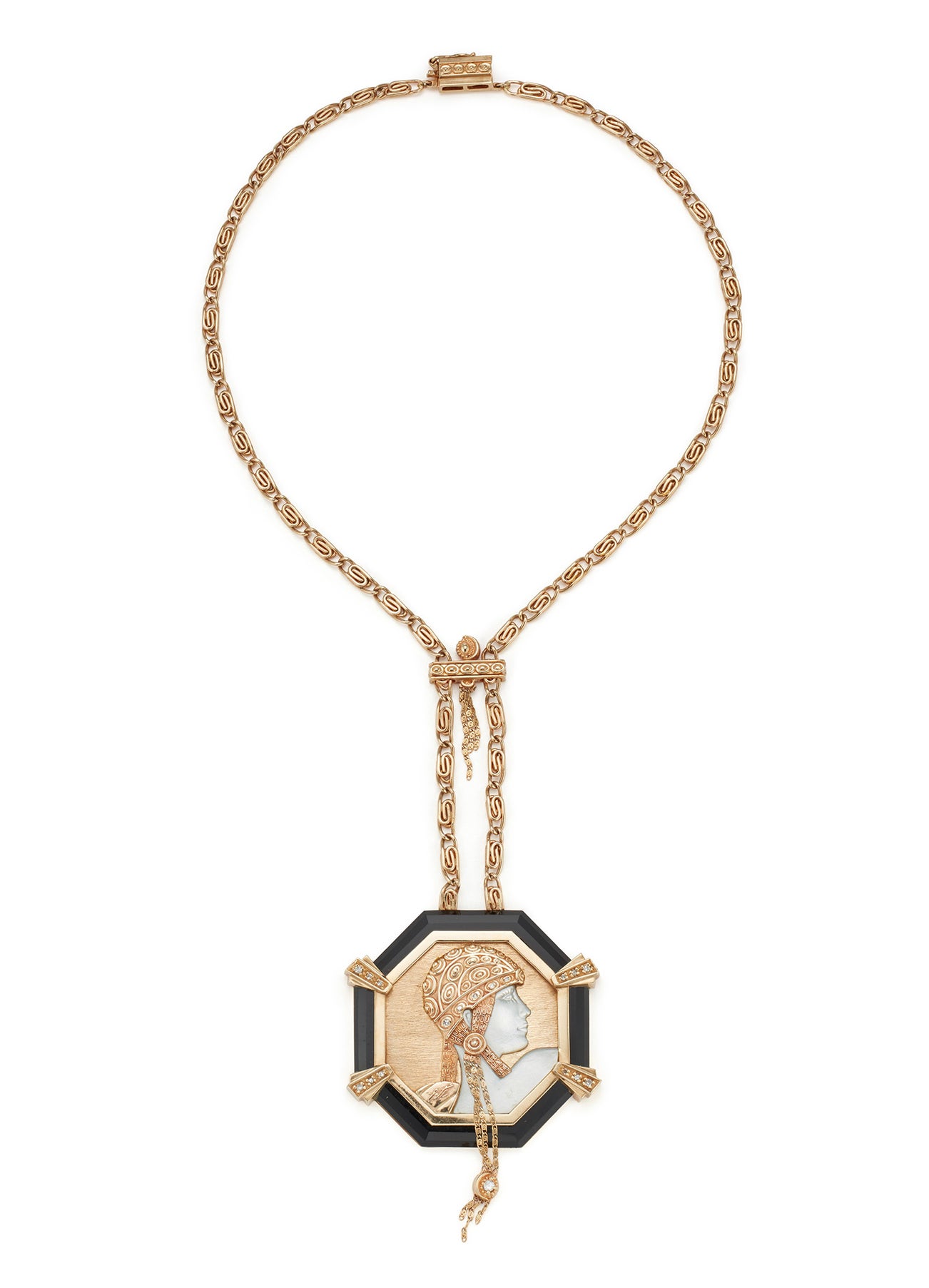 A Mother-of-Pearl, Onyx, Diamond and Gold Necklace