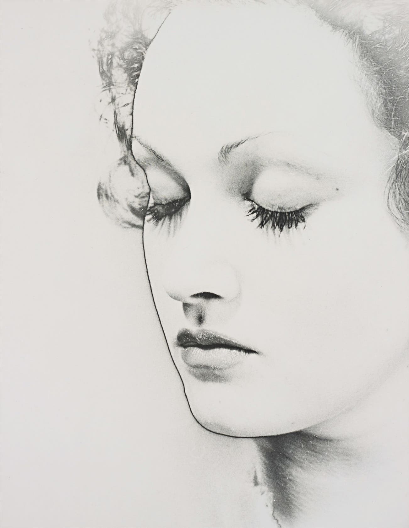 Erwin Blumenfeld’s photography is characterized by the use of obscure and unregulated darkroom techniques which loosely belong to and exceed the categories of: print solarisation, the layering of images, negative-positive combinations and also the crystallization of the negative dried through refrigeration. The immediate effect is unusual and disorientating as well as overwhelmingly sublime. This world that Blumenfeld creates has the ultimate objects of his desire and fantasy at its beating sensual heart; these being the contours of the woman, face and body. Through technique, the features; limbs, torso and facial features become fragmented, melted and illuminated by his ability to conjure light, the sparkle of which dances across the subject presenting us with a being of pure and enduring beauty.