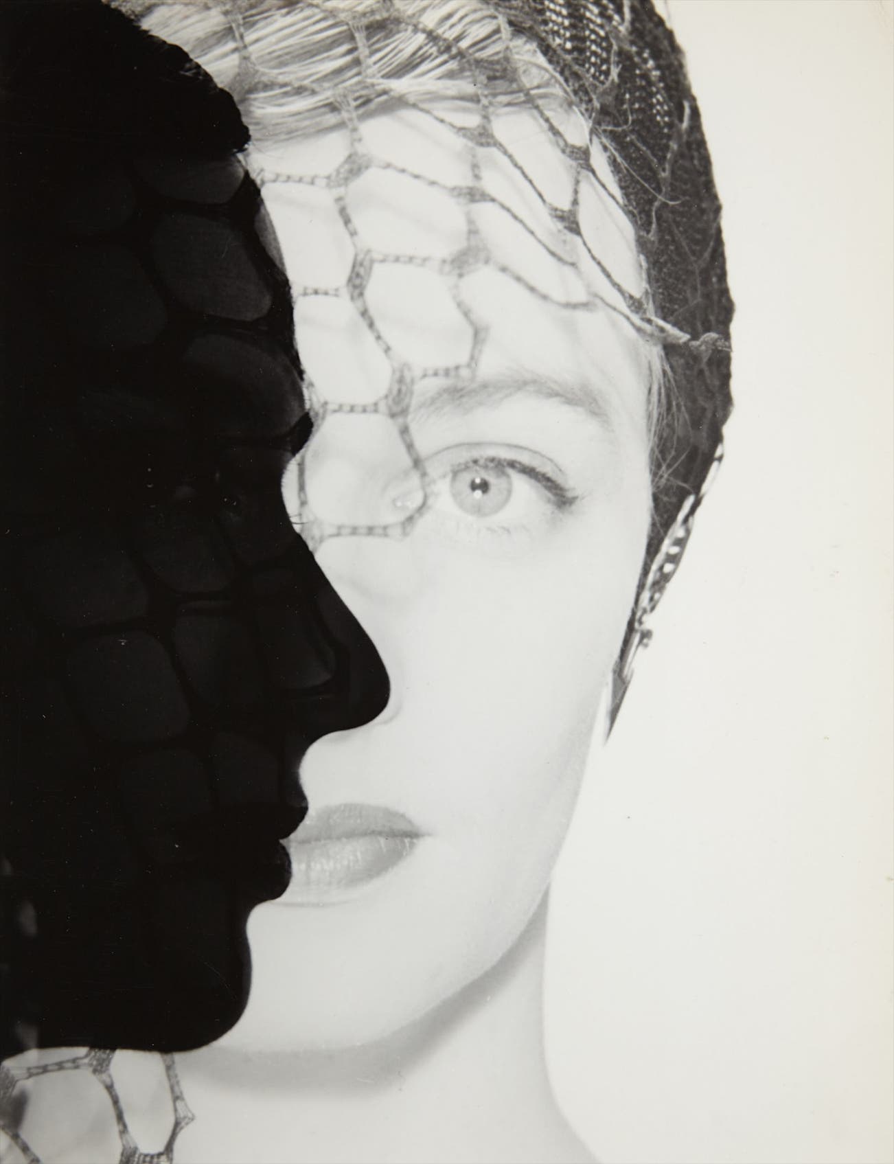 In 1936 Blumenfeld moved to Paris and soon signed with French Vogue with the help of photographer Cecil Beaton. Working largely in the studio, Blumenfeld crafted his skills in fashion photography and figural studies that defied that era’s conventions, often experimenting with double-exposures, solarization and the splicing of images. Upon moving to America in 1940, Blumenfeld continued developing his distinct style, which became more graphic and abstract, as evidenced by the over 100 Vogue covers that Blumenfeld shot throughout his career. His style was remarkable for its clean and unexpectedly fresh simplicity. On November 1st 1944, Blumenfeld photographed one of his most renowned covers (i), serving as a strong basis for the current lot, which was featured in Vogue in 1948 as a lipstick advertisement (ii). In both images, Blumenfeld layered a tight headshot of the model with the profile of a man. However, in the advertisement Blumenfeld added a veil that partially cascades over the model’s face, giving it an undeniably striking and Surrealist aura.