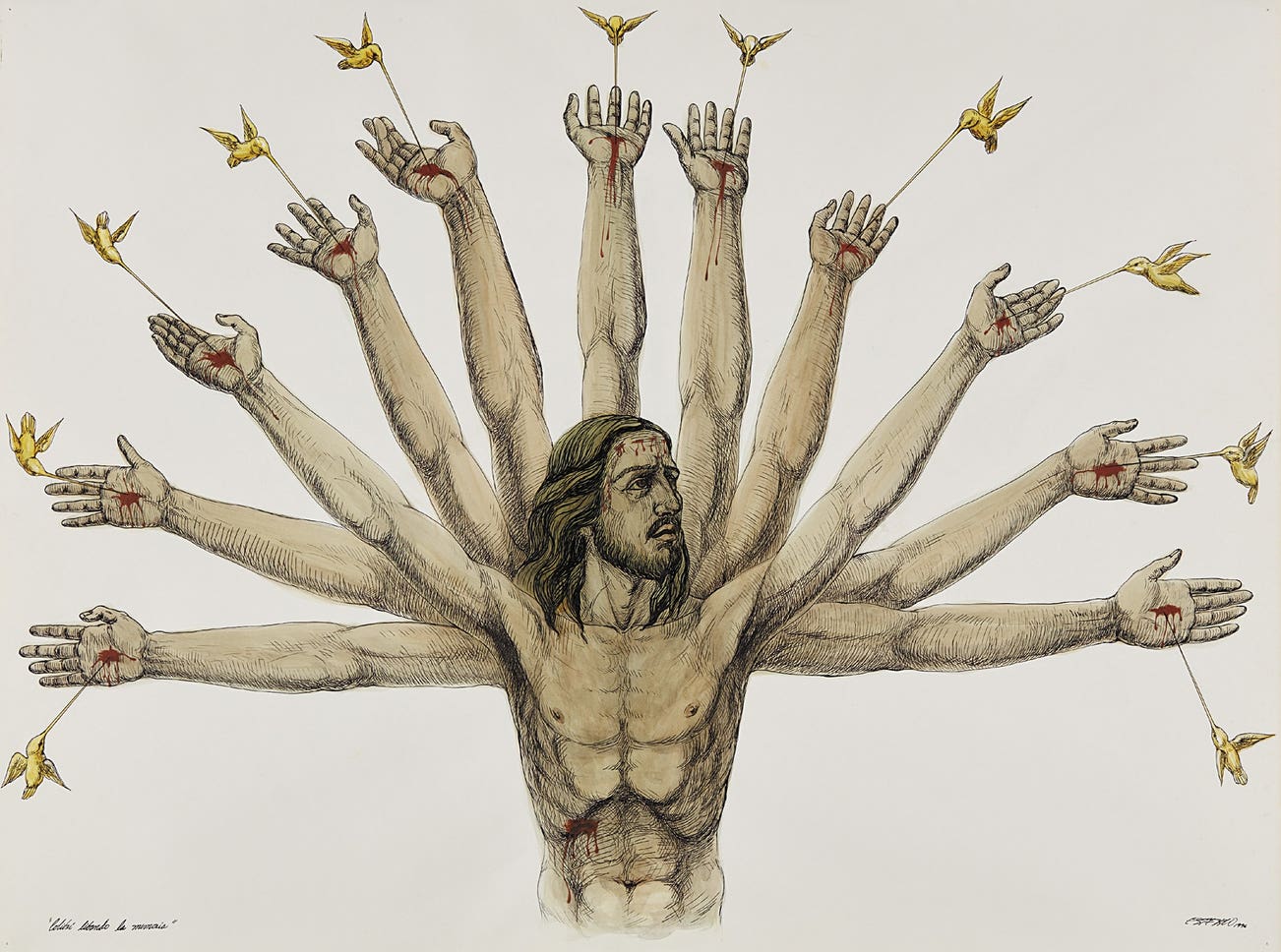 titled ""Colibrí libando la memoria"" lower left; further signed and dated "ESTERIO 1996" lower right