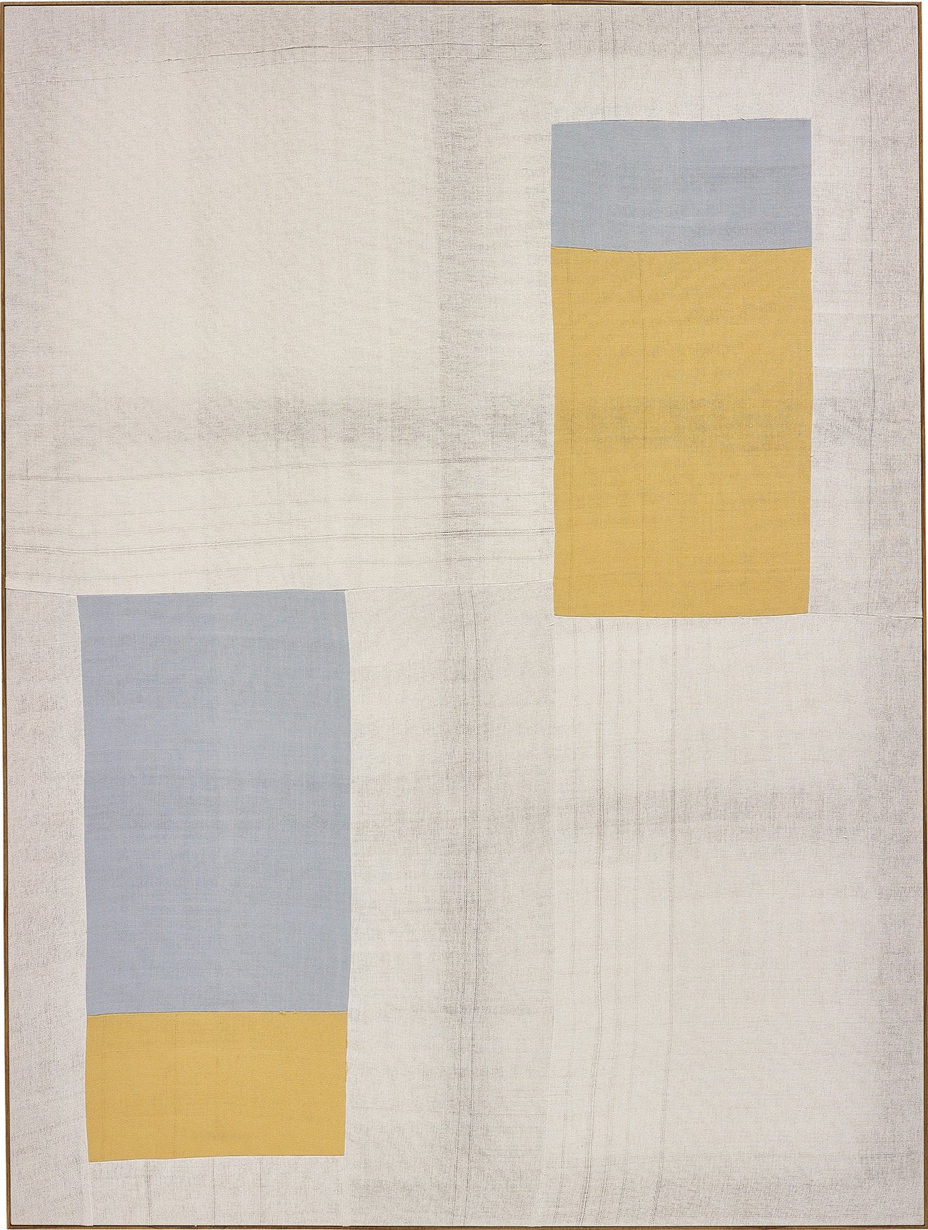 American | 1983New York-based artist Ethan Cook is known for his abstract paintings on self-produced canvases. More recently, he has used handwoven strips of cotton and linen to create painterly compositions. Cook's woven canvases are contemporary in their minimalist focus on shape and color while referencing one of the most traditional art forms, weaving. Cook weaves his own canvases on a loom and juxtaposes these with store-bought canvas sheets in abstract arrangements. For the artist, the surface of the canvas itself becomes the focus of his practice. Using simple geometric shapes and a limited color palate, Cook's works nurture structural simplicity.