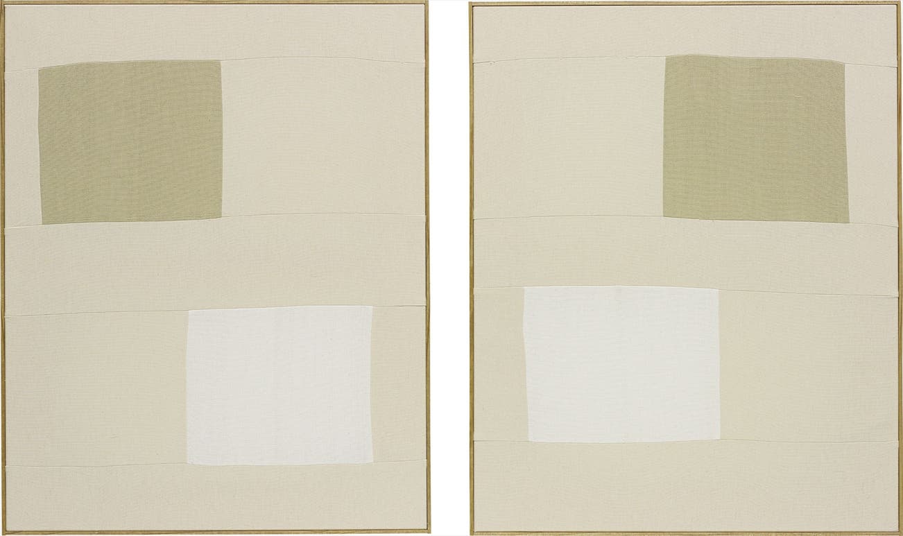 two hand woven cotton canvases, in artist's frames