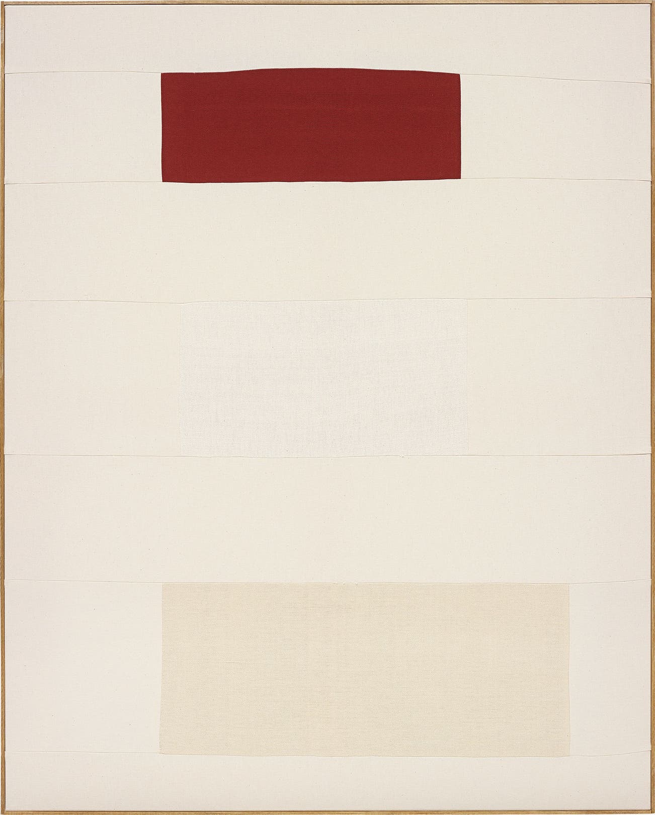 American | 1983New York-based artist Ethan Cook is known for his abstract paintings on self-produced canvases. More recently, he has used handwoven strips of cotton and linen to create painterly compositions. Cook's woven canvases are contemporary in their minimalist focus on shape and color while referencing one of the most traditional art forms, weaving. Cook weaves his own canvases on a loom and juxtaposes these with store-bought canvas sheets in abstract arrangements. For the artist, the surface of the canvas itself becomes the focus of his practice. Using simple geometric shapes and a limited color palate, Cook's works nurture structural simplicity.