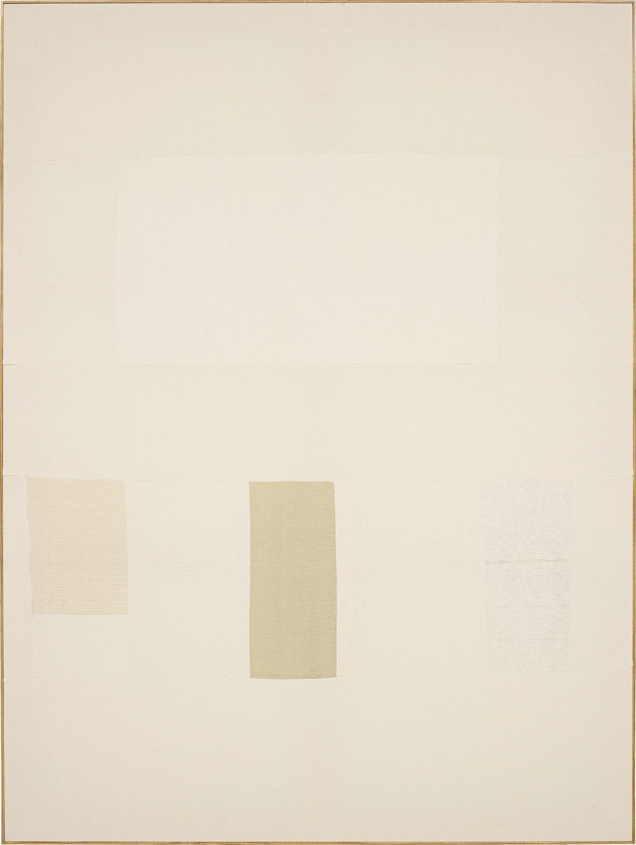 American | 1983New York-based artist Ethan Cook is known for his abstract paintings on self-produced canvases. More recently, he has used handwoven strips of cotton and linen to create painterly compositions. Cook's woven canvases are contemporary in their minimalist focus on shape and color while referencing one of the most traditional art forms, weaving. Cook weaves his own canvases on a loom and juxtaposes these with store-bought canvas sheets in abstract arrangements. For the artist, the surface of the canvas itself becomes the focus of his practice. Using simple geometric shapes and a limited color palate, Cook's works nurture structural simplicity.