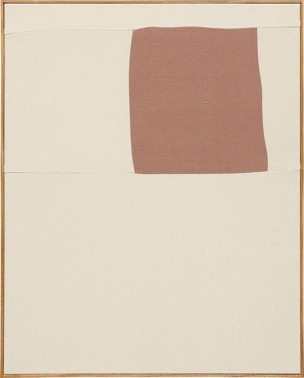 American | 1983New York-based artist Ethan Cook is known for his abstract paintings on self-produced canvases. More recently, he has used handwoven strips of cotton and linen to create painterly compositions. Cook's woven canvases are contemporary in their minimalist focus on shape and color while referencing one of the most traditional art forms, weaving. Cook weaves his own canvases on a loom and juxtaposes these with store-bought canvas sheets in abstract arrangements. For the artist, the surface of the canvas itself becomes the focus of his practice. Using simple geometric shapes and a limited color palate, Cook's works nurture structural simplicity.