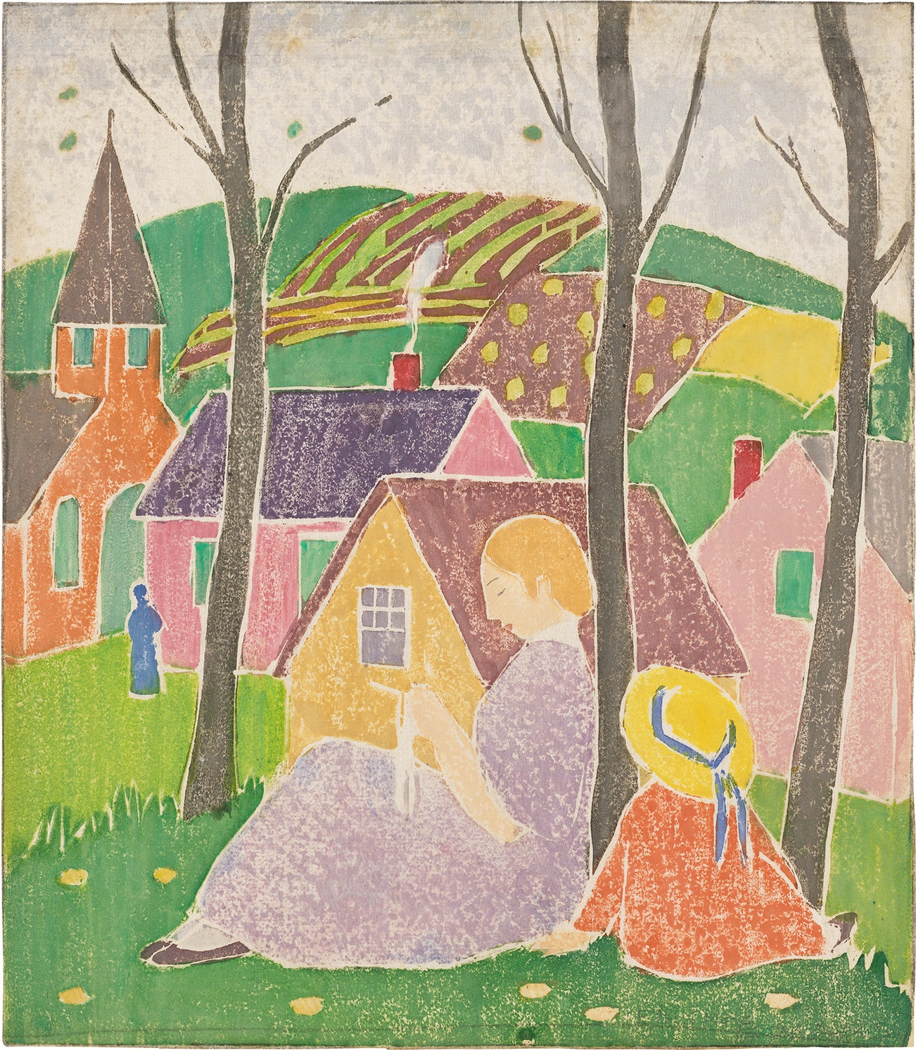 Signed 'by Ethel Mars' in pencil on the reverse, additionally annotated 'Ethel Mars' and '1918 or 1919' in pencil on the reverse (all presumably by other hands), framed.