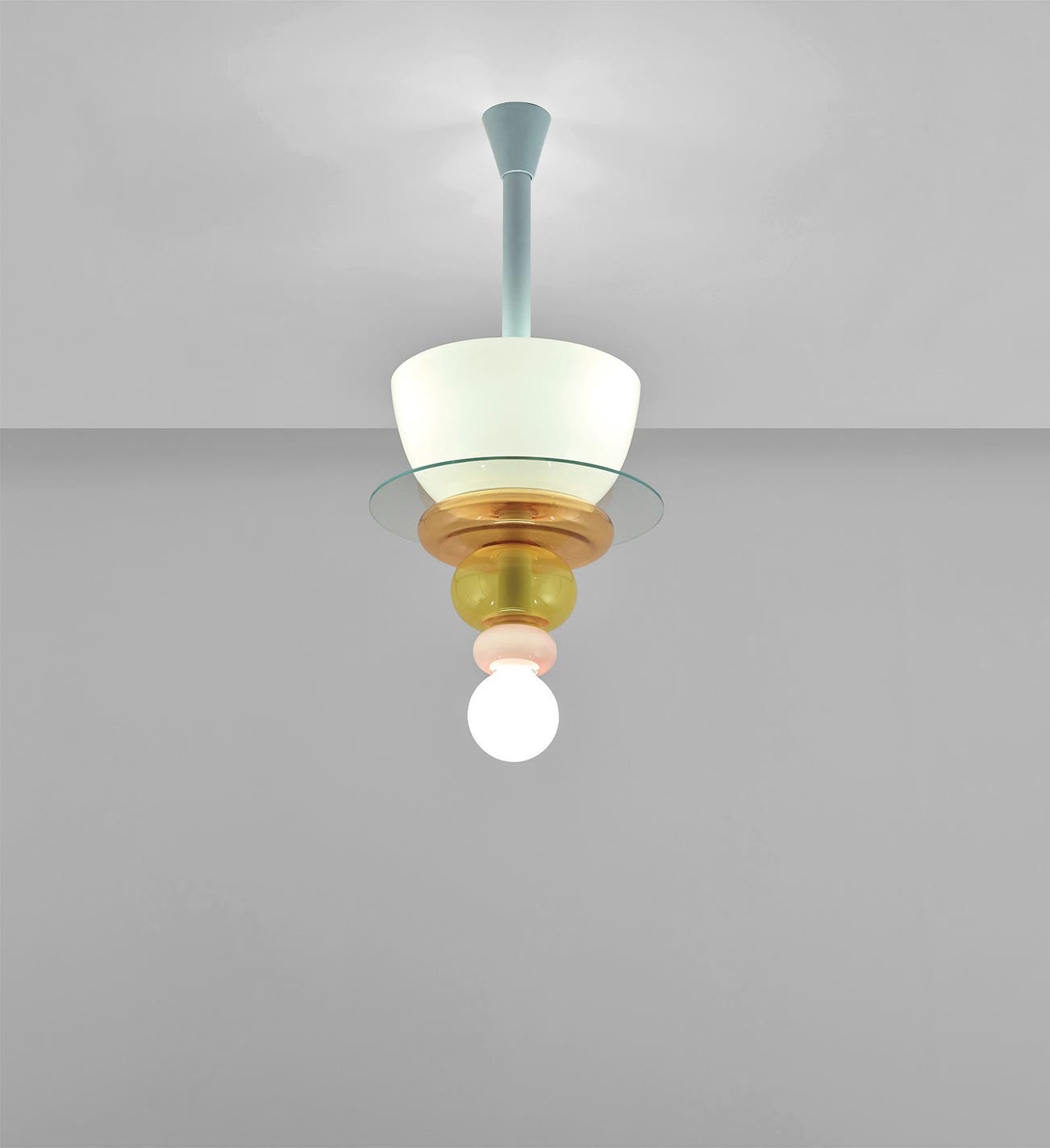 Coloured glass, glass, painted steel.
