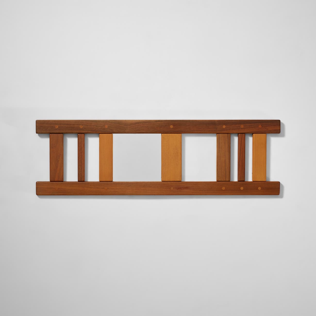 Padauk, ash, zebrano, iroko, mirrored glass, glass.