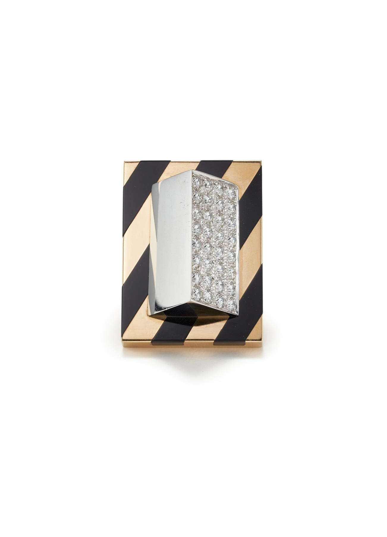 A Diamond, Onyx and Gold 'Roof' Ring