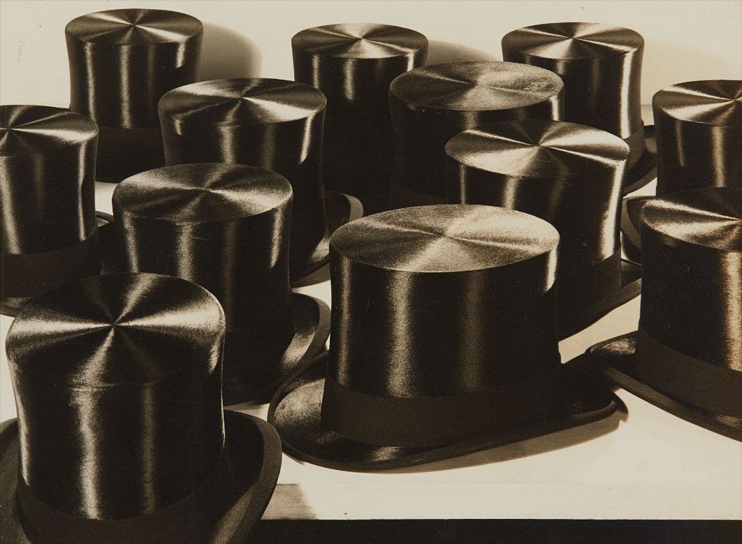 Eugene Hutchinson was portrait and commercial photographer who, like his contemporary Edward Steichen, used the new language of modernism in the early days of advertising. George Hurrell, who was Hutchinson’s assistant in the early 1920s, would later recall that he spent “two years with that genius from Chicago.” Around the time Hutchinson created Top Hats, circa 1930 for Sears Roebuck, he was still based in Chicago but in the process of moving his commercial studio from Chicago to the same building in New York City as Steichen. Top Hats was a celebrated image in its day: mentioned in a 1934 Vanity Fair article on commercial photography and illustrated as a prime example of the "new art form." This is believed to be one of only two known prints of this image.