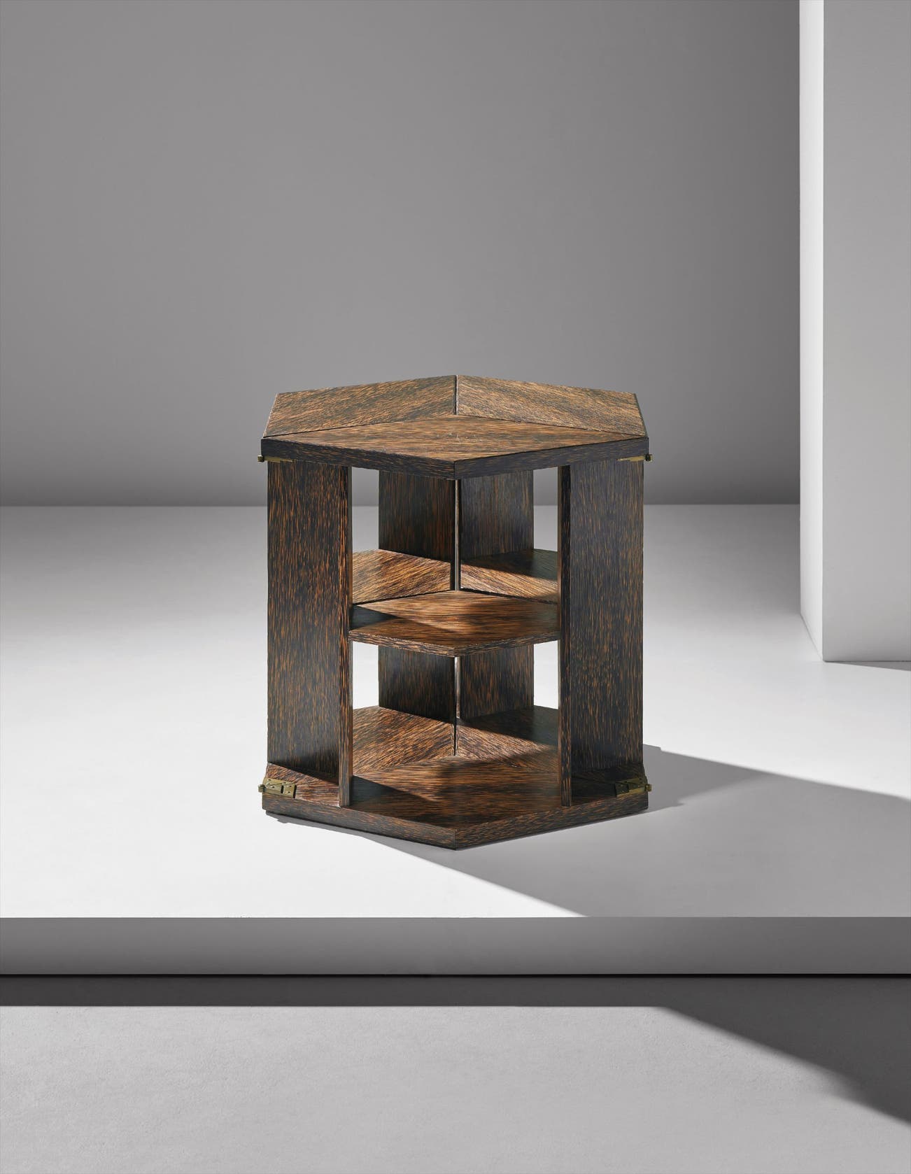 Palmwood-veneered wood, brass.