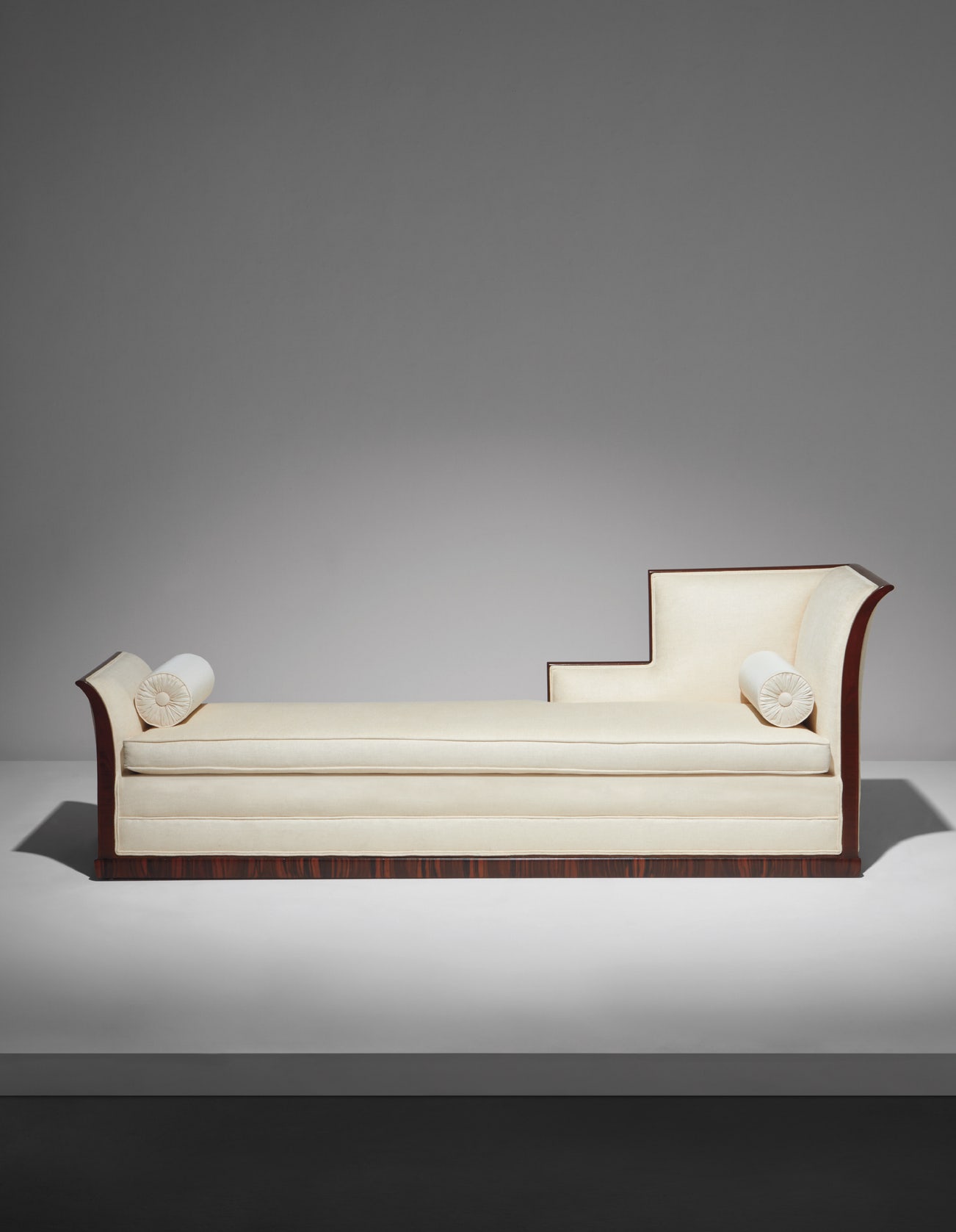Mahogany-veneered wood, macassar ebony-veneered wood, fabric.