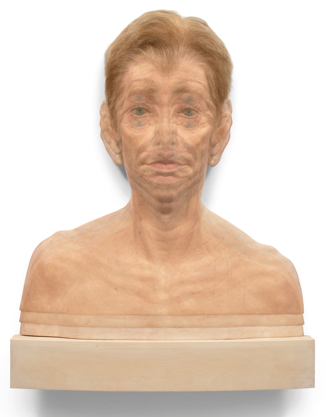 silicone, pigment and human hair on wood support