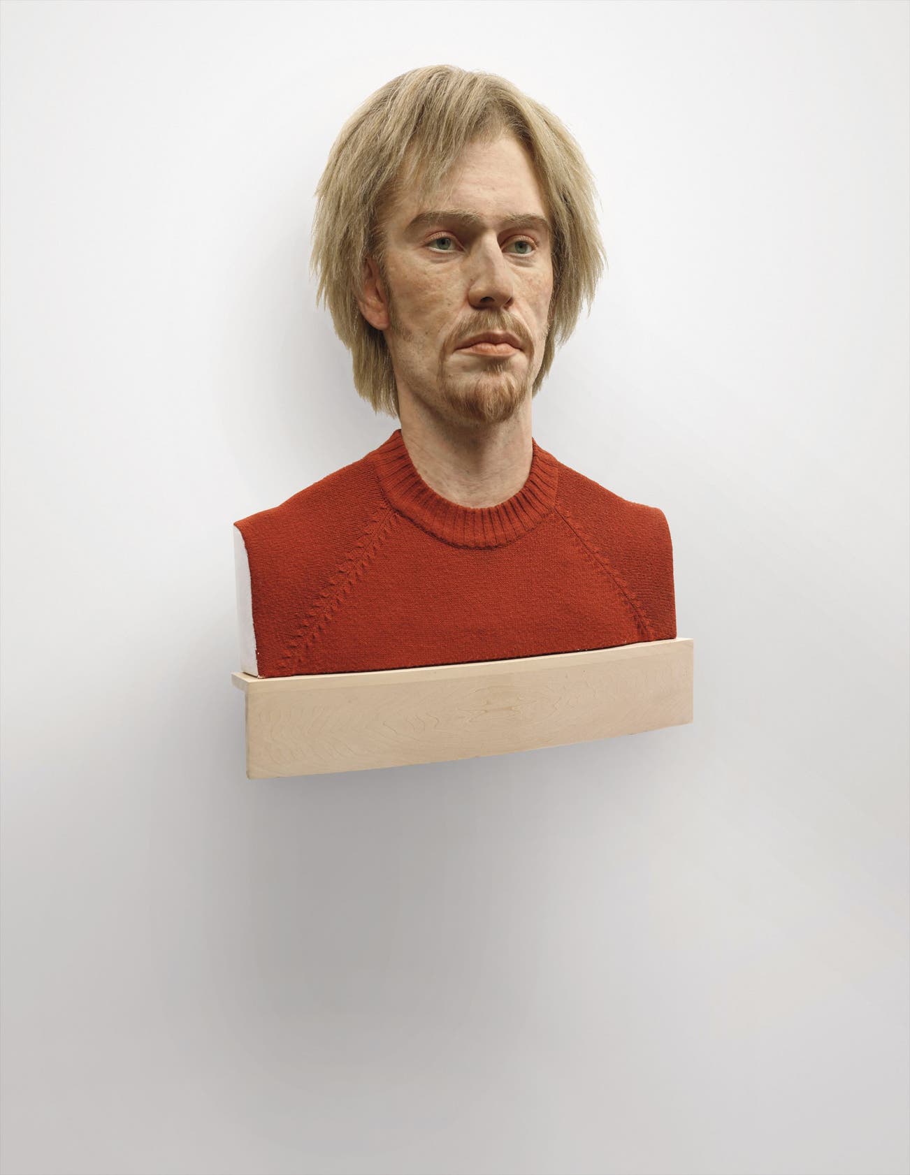 silicone, pigment, fabric, hair, plaster, wood