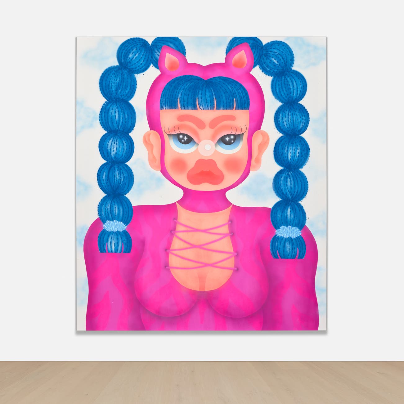 acrylic and spray paint on canvas, in artist's frame