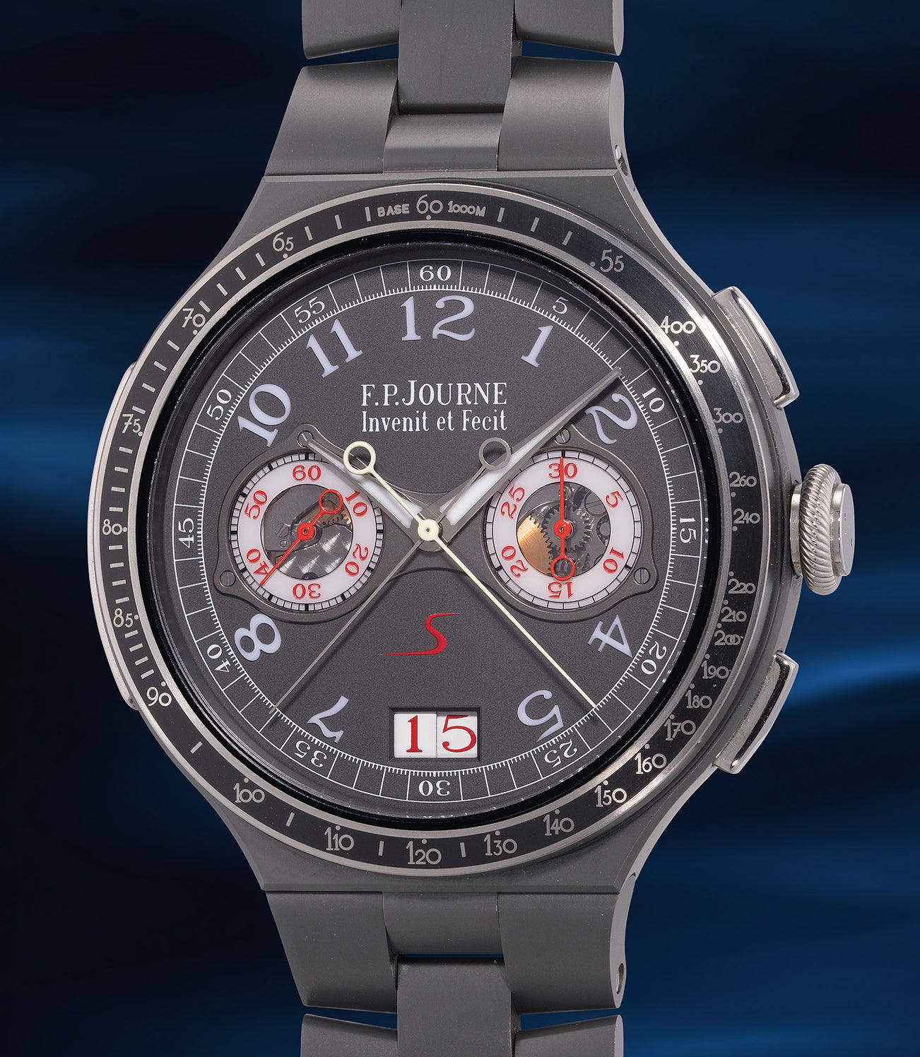 Measuring 44mm in diameter, and fitted with a titanium integrated bracelet, the timepiece wears extremely comfortable on the wrist, complementing its beauty and engineering prowess with high wearability. Offered in excellent condition and accompanied by its original guarantee and fitted presentation box, the present example is a rare and well-preserved timepiece that will surely appeal to collectors.