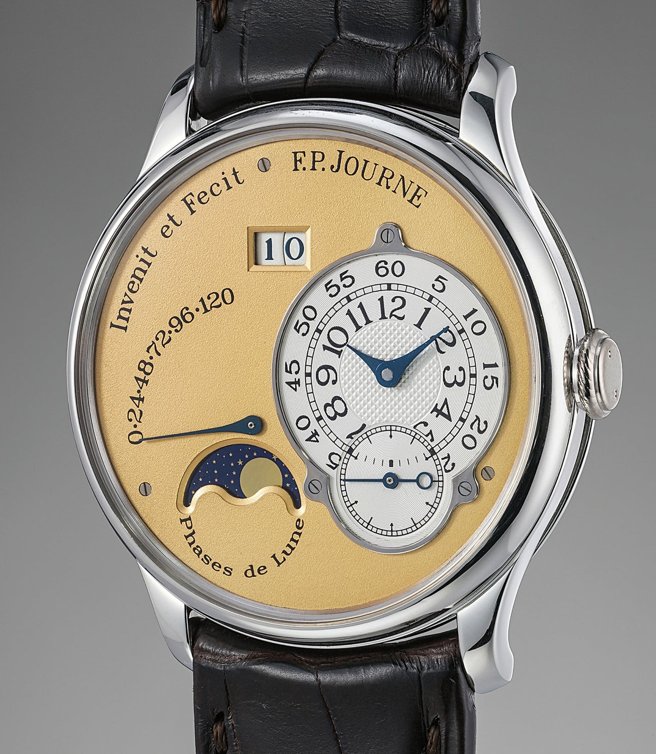 The present Octa Lune in excellent condition epitomizes Journe’s philosophy of technical expertise, design acumen and legibility and is a wonderful opportunity to own an extremely rare piece from one of horology’s greatest artisans.