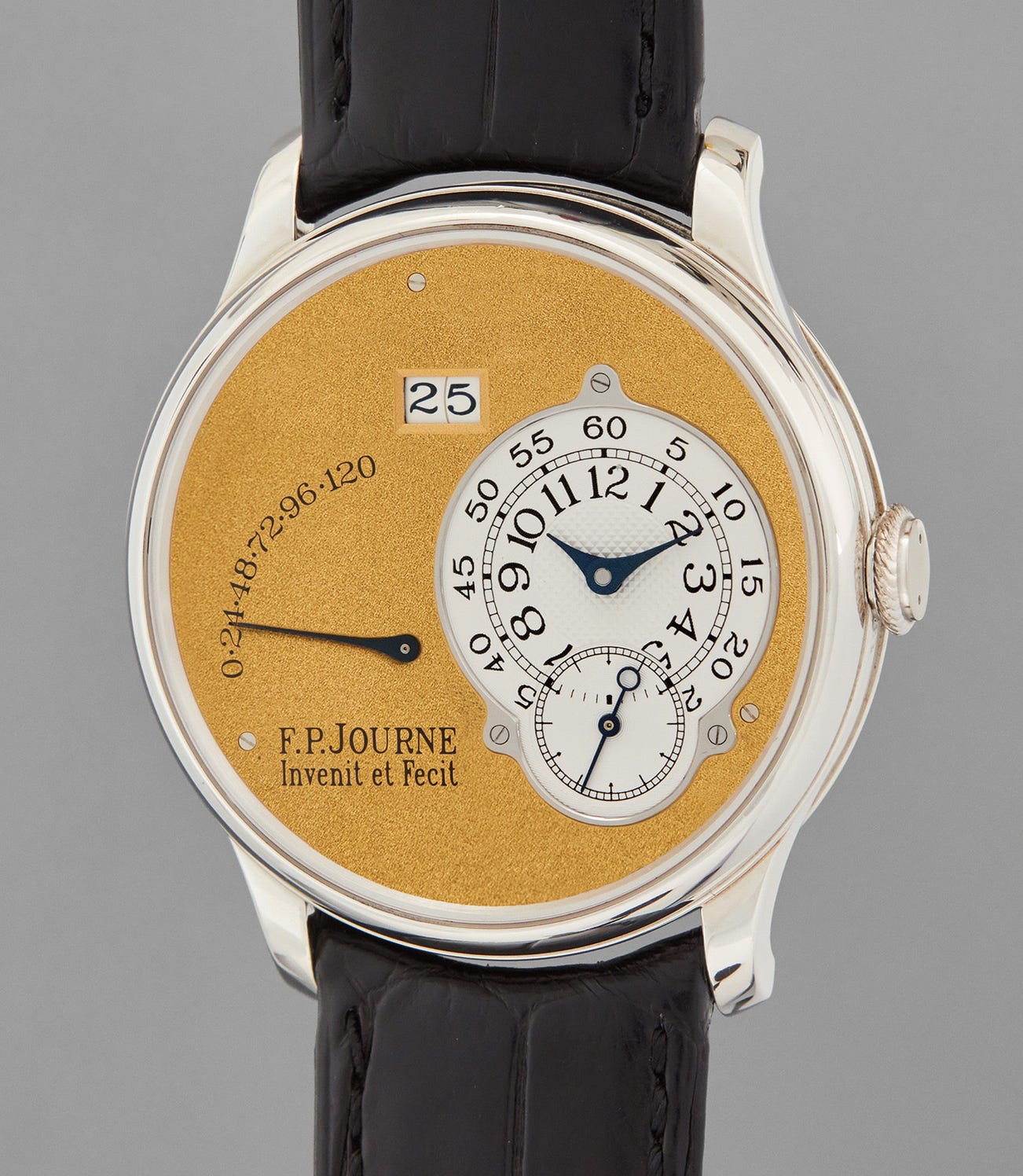Accompanied by F. P. Journe Authenticity Certificate dated May 29, 2017 confirming production of the present watch in 38mm diameter with brass movement.