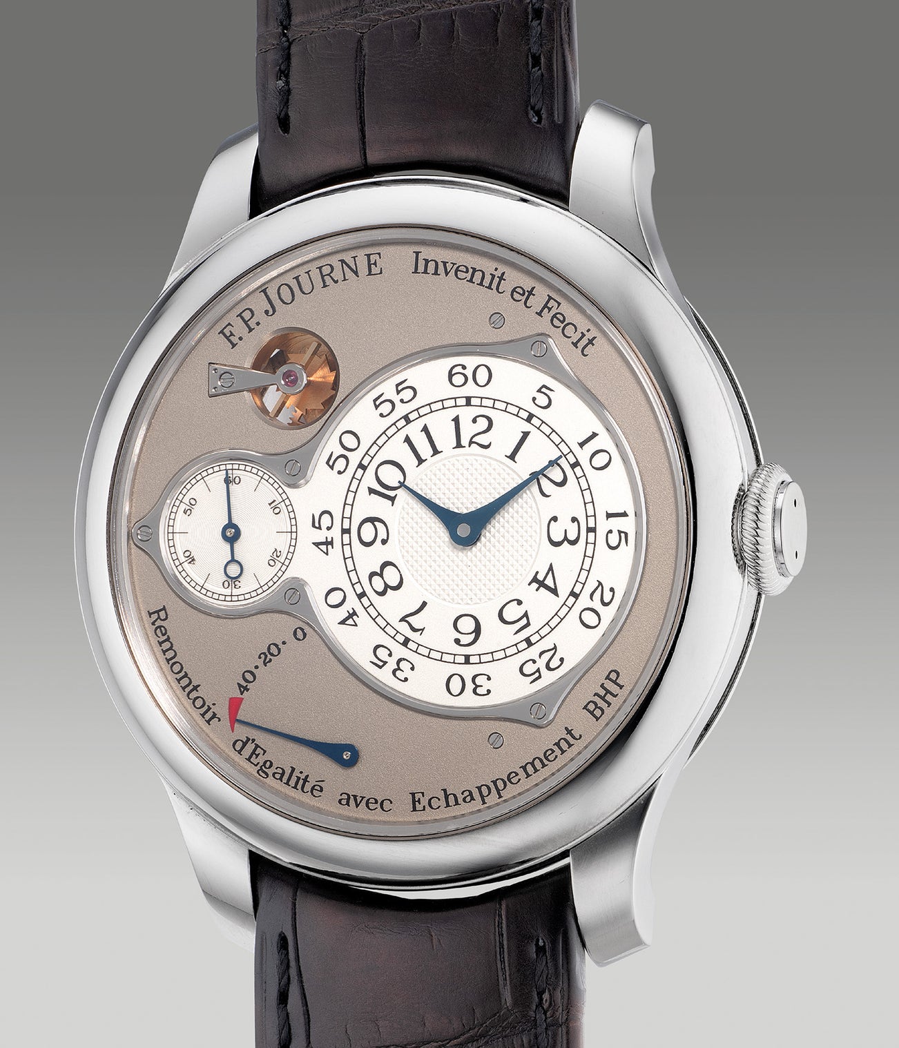 Conceptualized to be built as the timepiece for Francois-Paul Journe himself, the Chronomètre Optimum symbolizes the very essence of precision in Monsieur Journe’s watchmaking philosophy. Dedicated simply to deliver the most precise and sustainable measurement of time, Mr. Journe envisioned the original concept since 2001. The quest for precision took a prolonged 10 years to shape up and was finally revealed in 2012. Adopting finest components of iconic Haute Horlogerie timepieces from the firm’s collection such as the double-barrel layout of the Chronomètre Souverain and the Remontoir d’egalité system from the Tourbillon, the Chronomètre Optimum paramount significance. It is the truly the ultimate chronometer of extreme precision and utmost longevity.