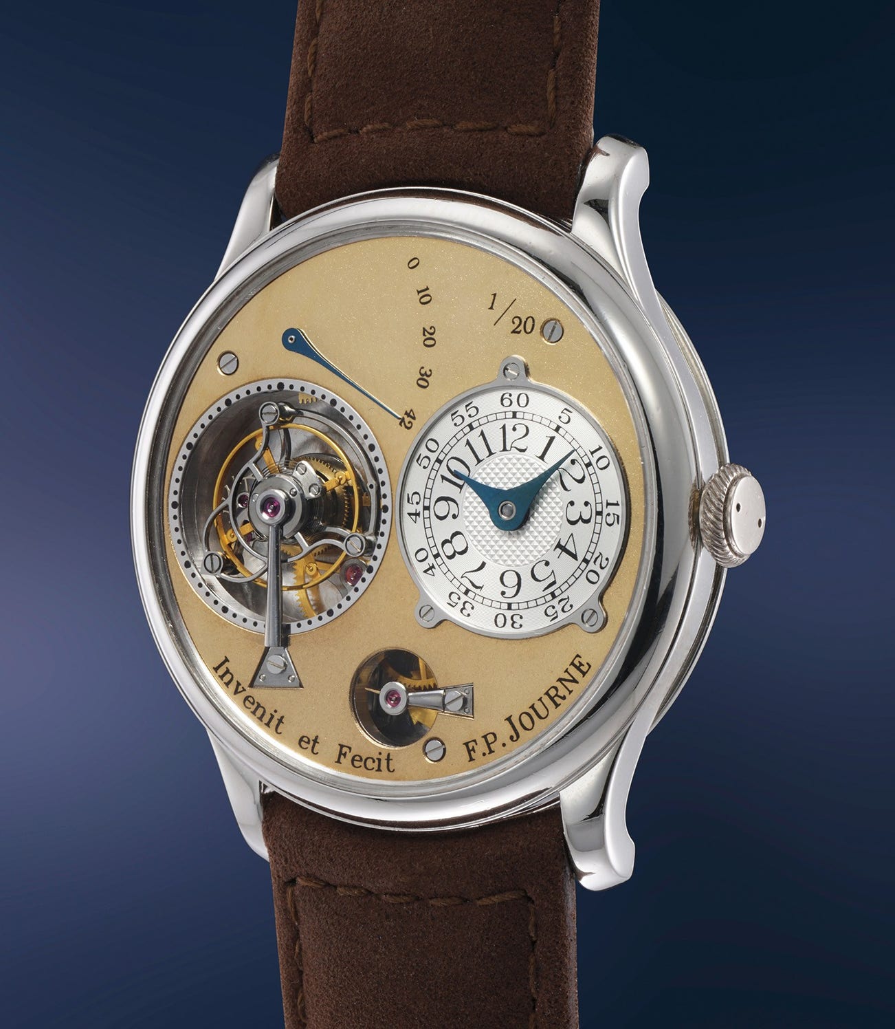 The present tourbillon is most probably one of Journe’s most important series produced watches in terms of historical relevance as it bears number 1/20. It is fresh to the market and comes from the original owner who had the rare vision and audacity to support a young watchmaker who would become one of the biggest names in the market 20 years later.