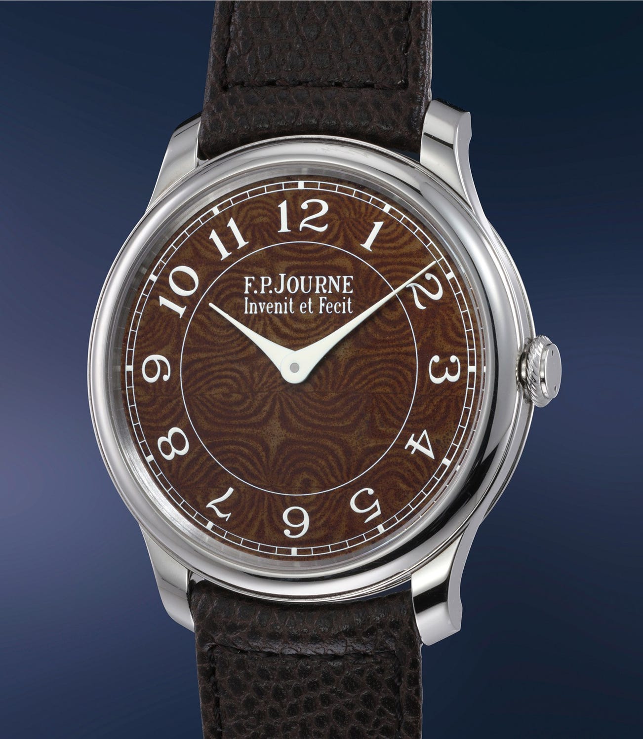 The present watch, numbered 23 of a 38 limited edition, is known as the Chronomètre Holland and Holland, and is cased in stainless steel with a Steel Damascus dial. The brand very rarely produces stainless steel models, and such instances can be counted on one hand. The dials were most notably made from Holland & Holland gun barrels from 1868. The model was an ultimate collaboration between F.P. Journe and Holland & Holland, with the latter cutting and treating the dial. Incredibly rare, the timepiece was only offered to the manufacture's very best clients. Indeed, the present watch as reputedly chosen by Journe himself for his client, upon the client's request for the Maestro himself to pick a model for him that most suited his personality and taste.