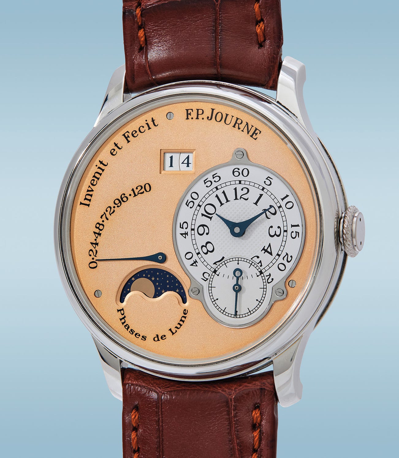 Phillips is honored and proud to offer the present example with serial number 001, discovered during Phillips’ multi-city world tour exhibition of the F.P.Journe Souscription set of five watches with serial number 001 offered in Phillips’ The Geneva Watch Auction: XIV sale in November 2021. Bearing serial number 001-03L, it is most likely the very first Octa Lune produced by F.P.Journe.