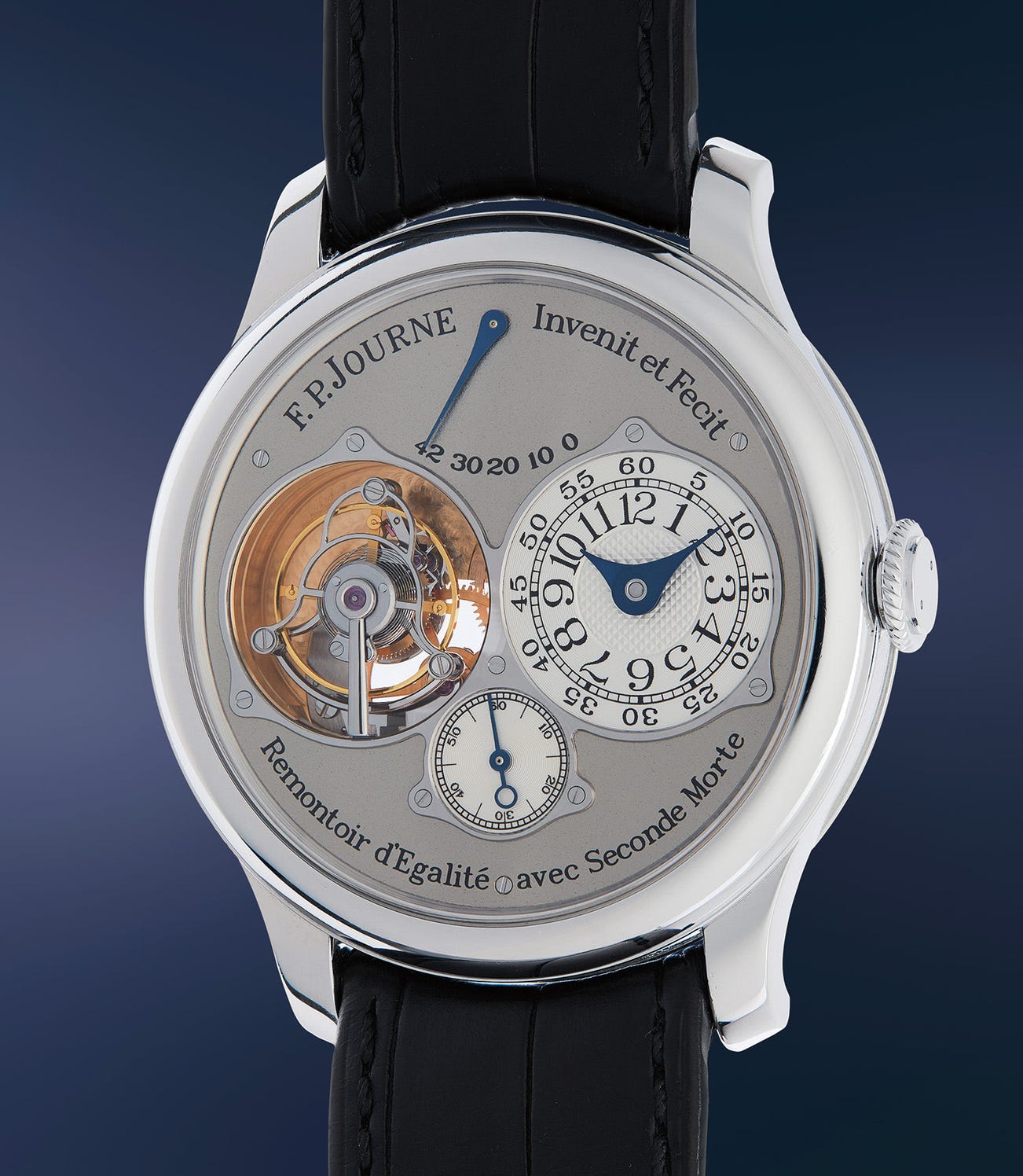 Francois-Paul Journe launched his namesake brand with the motto “invenit et fecit” (invented and made) in 1999, first introducing the Tourbillon Souverain Remointoir d’Egalite, known as the “T”. In 2003, Francois-Paul Journe pushed the boundaries of his timekeeping masterpiece further, upgrading the “T” to the “TN” model (“Tourbillon Nouveau”), the reference Tourbillon Souverain Remontoire d’Egalité avec Seconde Morte. “Seconde Morte”, the art of making time stand still, is the French term for “dead beat seconds”. This complication requires the utmost precision to reliably stop and restart the seconds hand as the escapement continues to beat—not moving until one second has elapsed, then jumping to the next second. Enhanced with a deadbeat seconds complication, the timepiece with constant force mechanism was designed for highly accurate, precision timekeeping. With the introduction of an 18 karat pink gold movement and cased in platinum as well as pink gold, it was in production until 2018.