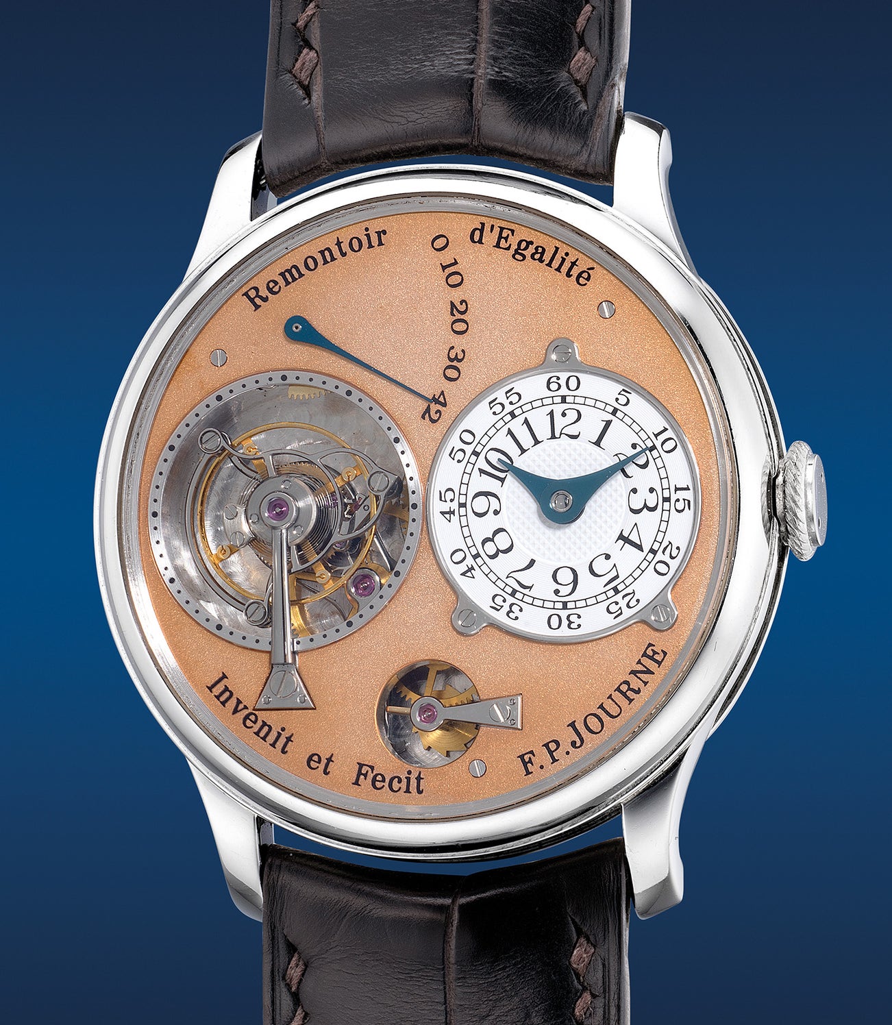 Fascinated by tourbillon watches, Francois Paul Journe decided to transpose Abraham-Louis Breguet’s invention into a wristwatch but also to improve it with the addition of a remontoire system - a constant force device used to provide an equal amount of energy disregarding the winding level of the mainspring, thus resulting in greater accuracy and amplitude. The first prototype was completed in 1991 with little, if any fanfare from the industry. He revisited his tourbillon wristwatch in 1999 in order to fund the launch of his eponymous brand as a Souscription series for his first twenty tourbillon wristwatches, each individually numbered on the dial and offered to his close friends and clients. A piece of horological history and deemed as grails to many, these tourbillons have been extremely sought in the market as exemplified in our PHILLIPS Geneva Auction XIV with the first No. 1 Souscription Tourbillon Souverain achieving an astonishing result of 3.5 million CHF.