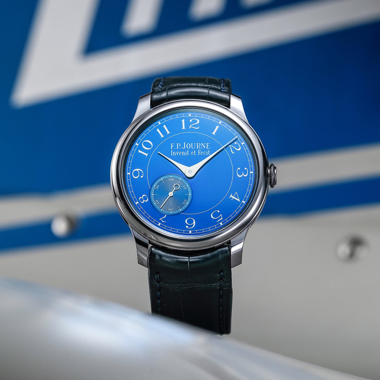 -The Chronomètre Bleu is one of the most talked-about and sought-after wristwatches produced in recent times. In 2011, Journe decided to introduce an entry level wristwatch to his notoriously highly complicated collection (his first model was in fact a tourbillon piece, followed by the Resonance). He wanted to make a timepiece that created an intervention within the industry, despite its simplicity. In hindsight, we can say that the mission was more than accomplished.