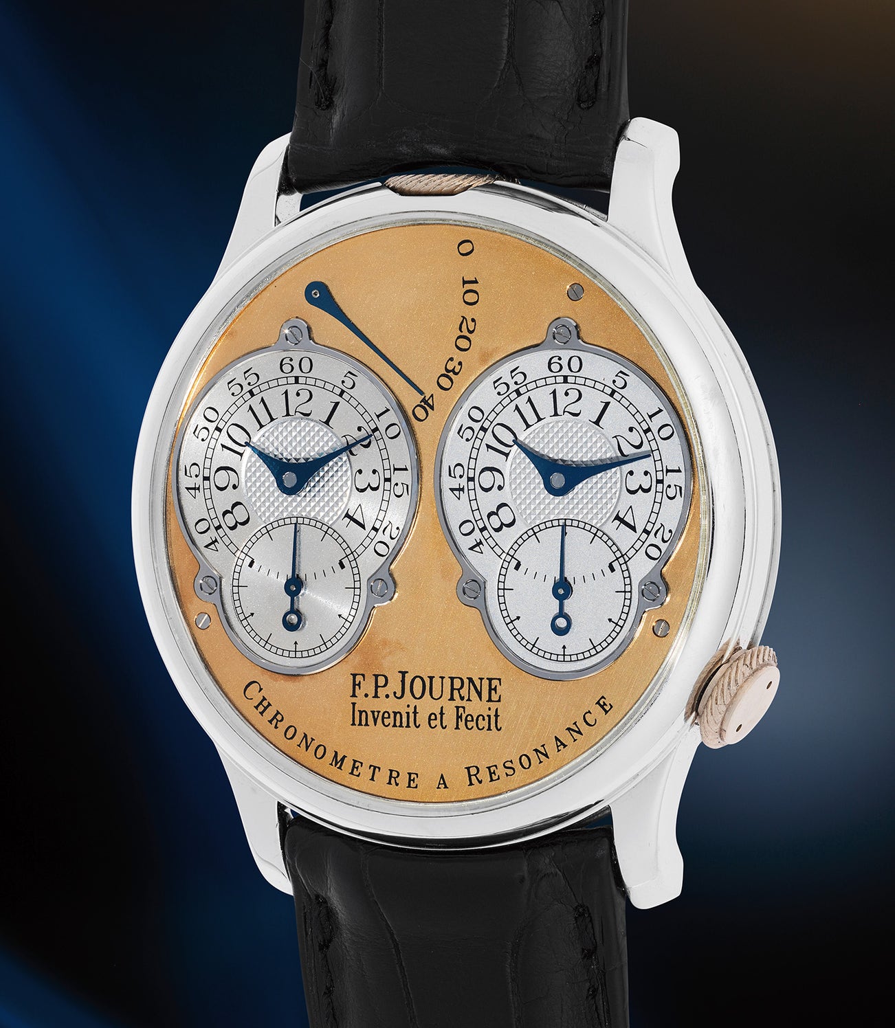 Though the brand launched in 1999, and with a living watchmaker at the helm, the scholarship on early F.P. Journe has evolved greatly over the last five years. Even then, the focus has remained largely on the Tourbillon. One cannot discount the innovative quality of the Résonance, however, as the world’s first wristwatch to use the resonance phenomenon. The movement is composed of two independent balances, alternatively serving as an “exciter” and “resonator.” This phenomenon was first documented in horology by French royal clockmaker Antide Janvier in the 18th century in his double pendulum clocks, but it was François-Paul Journe who created the world’s first wristwatch using the resonance phenomenon – with his Chronomètre à Résonance wristwatch officially launching in 2000.