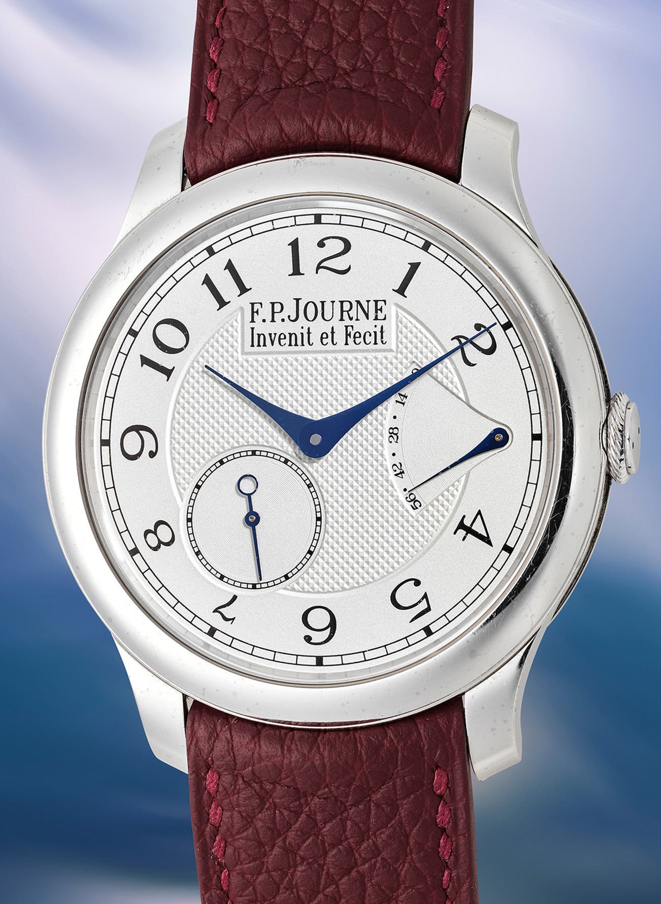 Accompanied by a F. P. Journe International Guarantee from Shreve Crump & Low dated January 2020, fitted presentation box, additional crocodile strap, USB stick, polish cloth, and outer packaging.