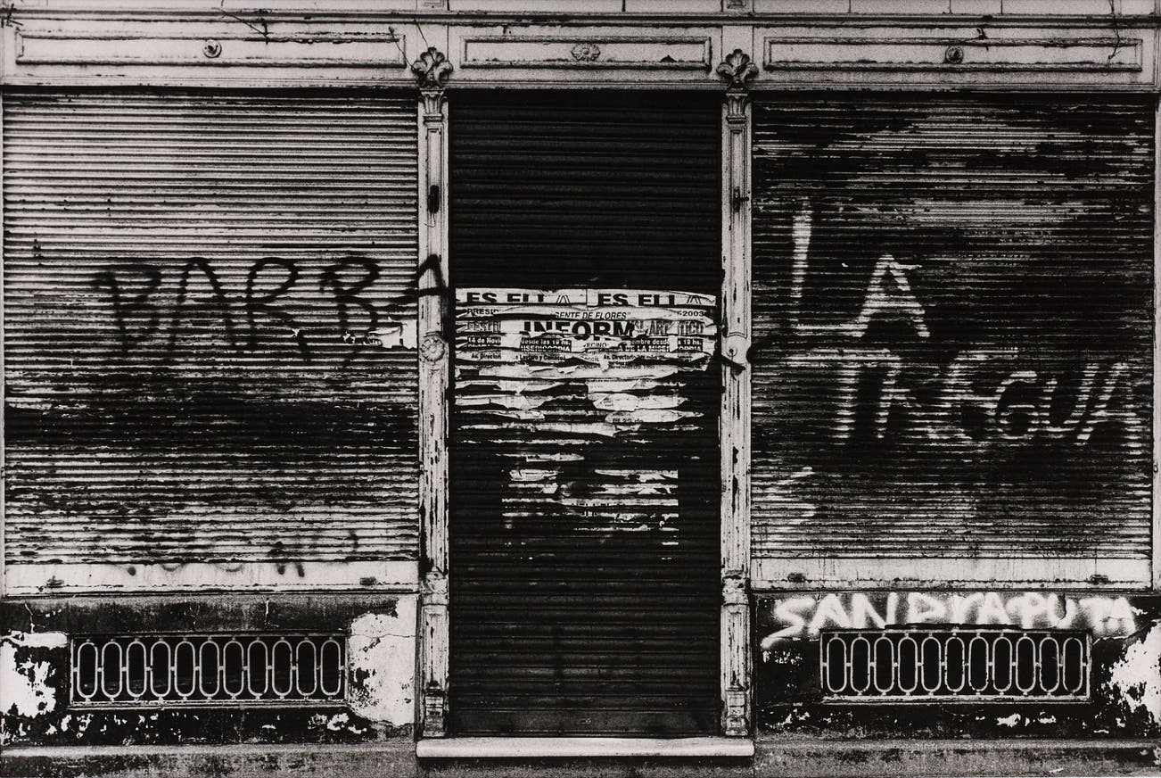 Facundo de Zuviría lives and works in Buenos Aires, exploring the urban landscape in his photographs. The series Siesta Argentina – created in the period following the Argentinian crisis at the end of 2001 – illustrates a city devoid of people and activities during mid-afternoon siesta. These images of storefronts in Buenos Aires draw attention to the differing patterns found on the building facades. De Zuviría has received multiple awards, including the prestigious Konex Award for his contributions to Argentinian visual arts in 1992 and again in 2012. His work has been exhibited at institutions worldwide, including the Fondation Cartier pour l’art contemporain, Paris and the International Center of Photography, New York. Museo Nacional de Bellas Artes in Buenos Aires holds a later print of this image.