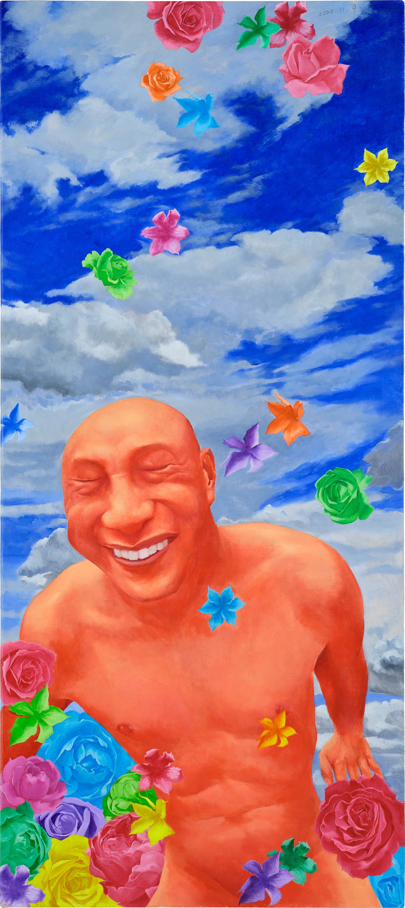 signed and titled '"2000.11.9" Fang Lijun [in Chinese]' upper right; further signed and titled '"2000.11.9" Fang Lijun [in Chinese]' on the reverse