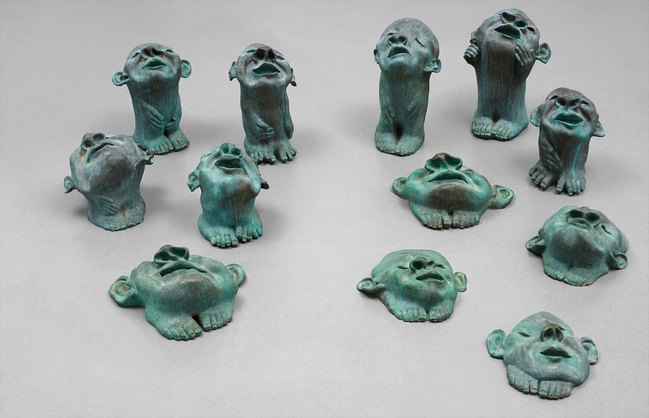 Each part signed in Chinese, numbered and dated 'Fang Lijun 6/8 2005' on the underside. This work is number 6 from an edition of 8.