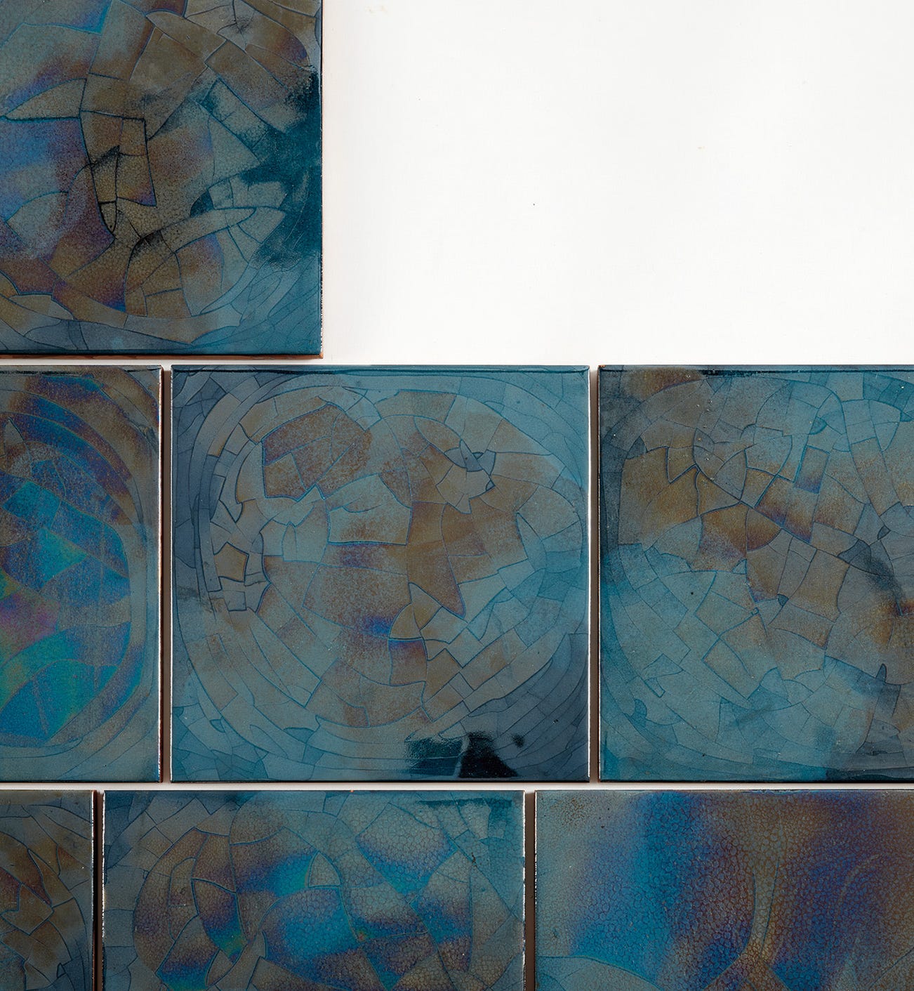 Produced by Iris Ceramica Group, Modena, Italy. Reverse of each tile impressed with manufacturer's mark and three tiles further impressed 65/P.1/T.4 and CERAMICA/MELOTTI/MILANO ITALY.