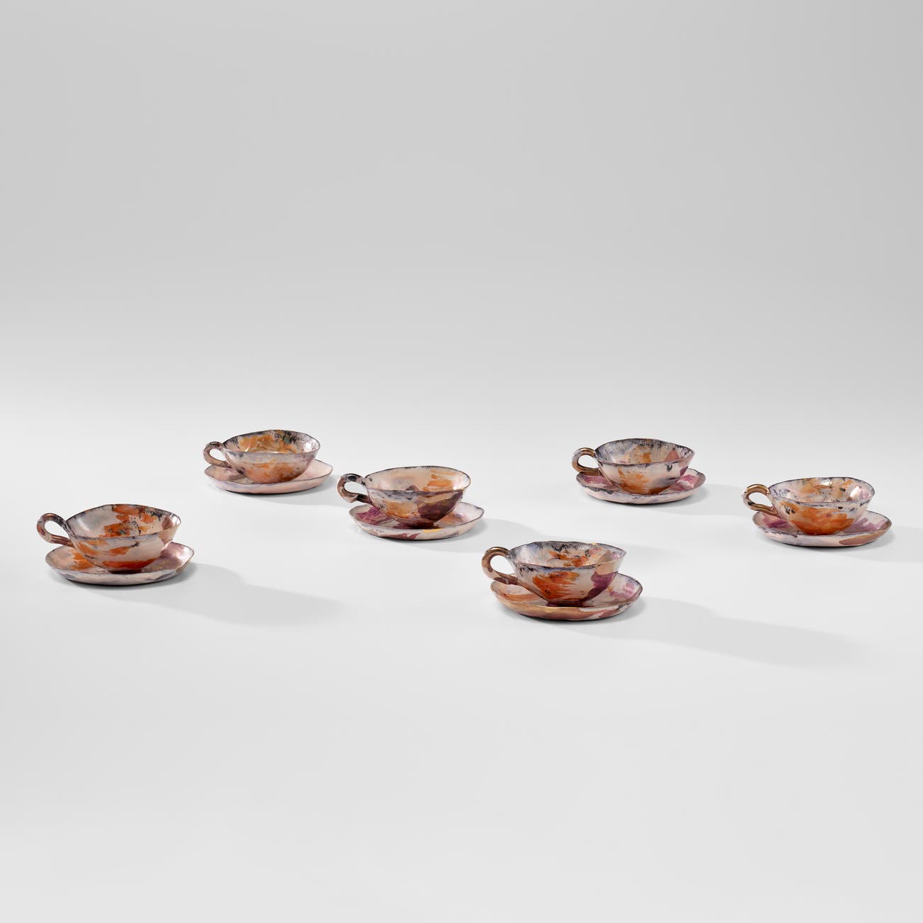 Produced in Milan, Italy. Underside of each cup and saucer with artist's seven dot cipher. Together with a certificate of authenticity from the Fondazione Fausto Melotti.