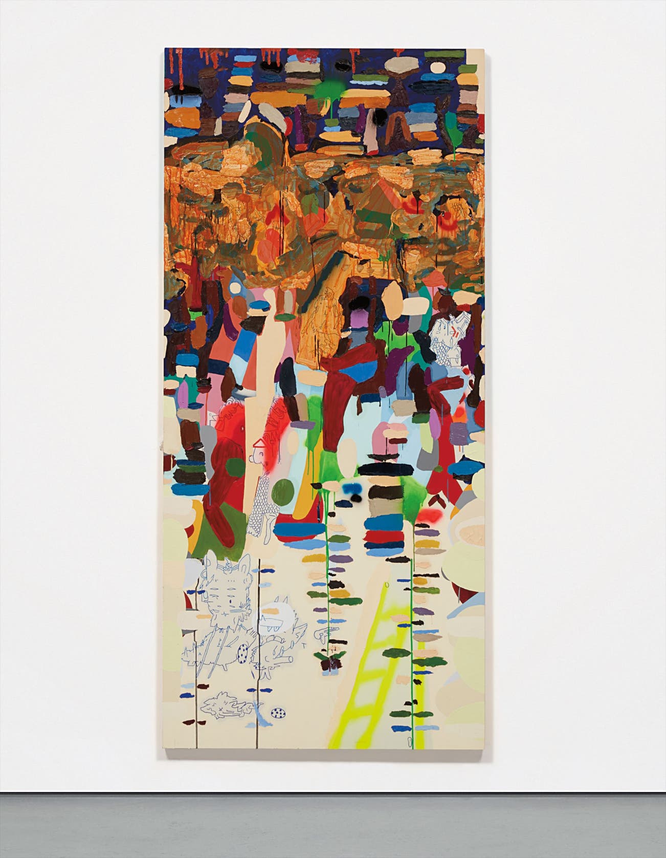 oil, acrylic, spray paint and permanent marker on canvas