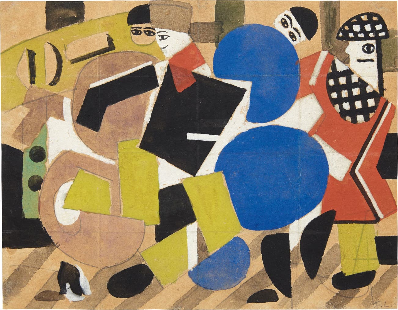Initialed "F. L." lower right. Titled and inscribed "Skating Rink projet du rideau" on the reverse.