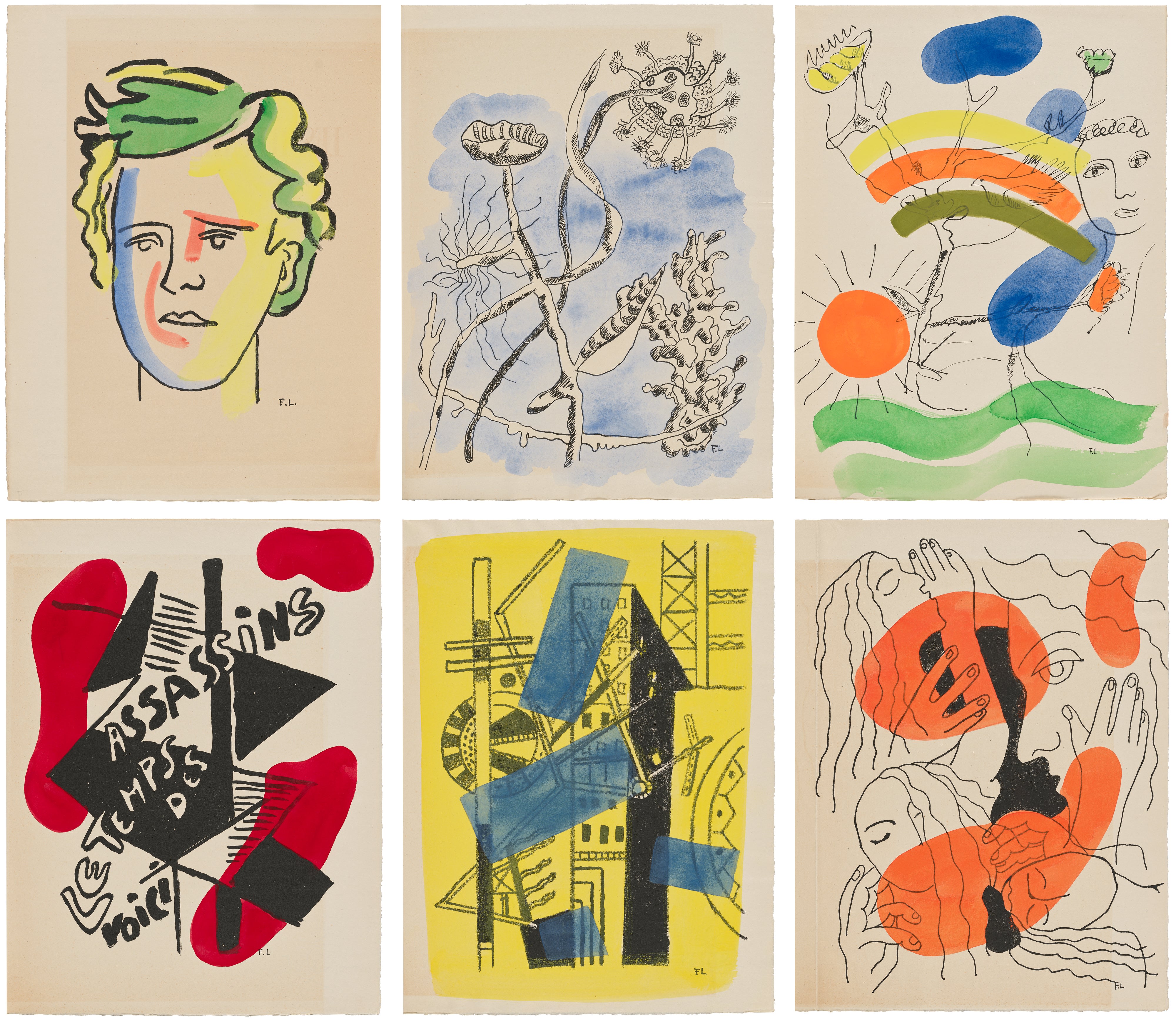 The complete set of 15 lithographs, 6 with pochoir in watercolor, on Lana paper, the full sheets and with full margins, with title page, text in French by Arthur Rimbaud, justification and table of contents, all folded (as issued), all contained in the original folio and slipcase.