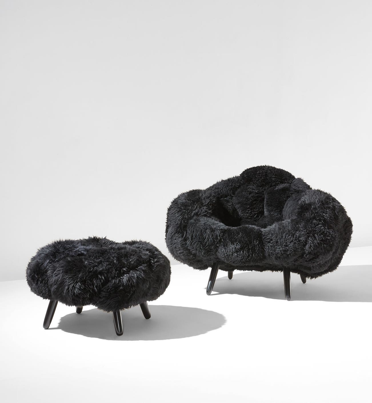 "Bolotas Armchair (Black)" and "Bolotas Ottoman (Black)"