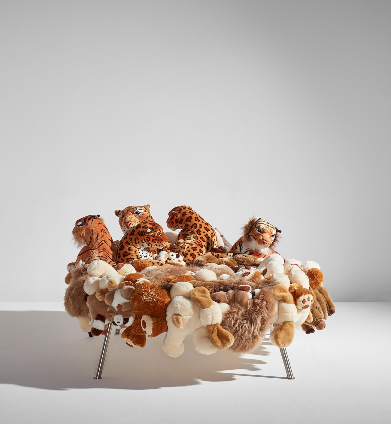 Stuffed toy animals, canvas, stainless steel.
