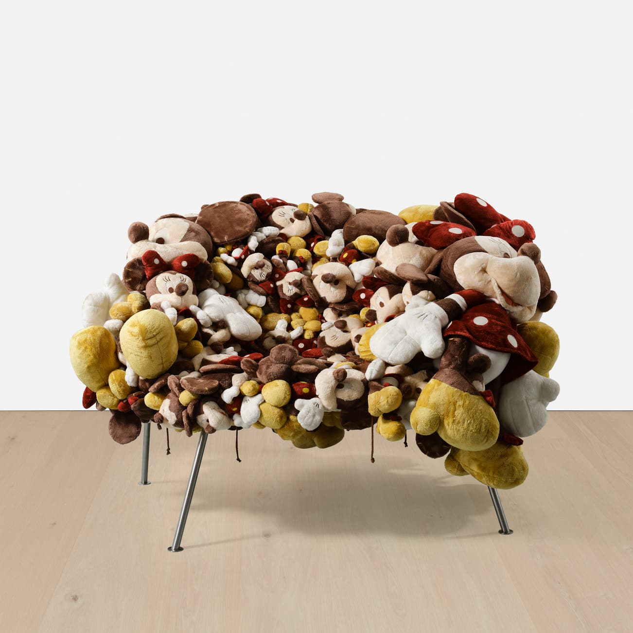 stuffed Disney toys, fabric, stainless steel.