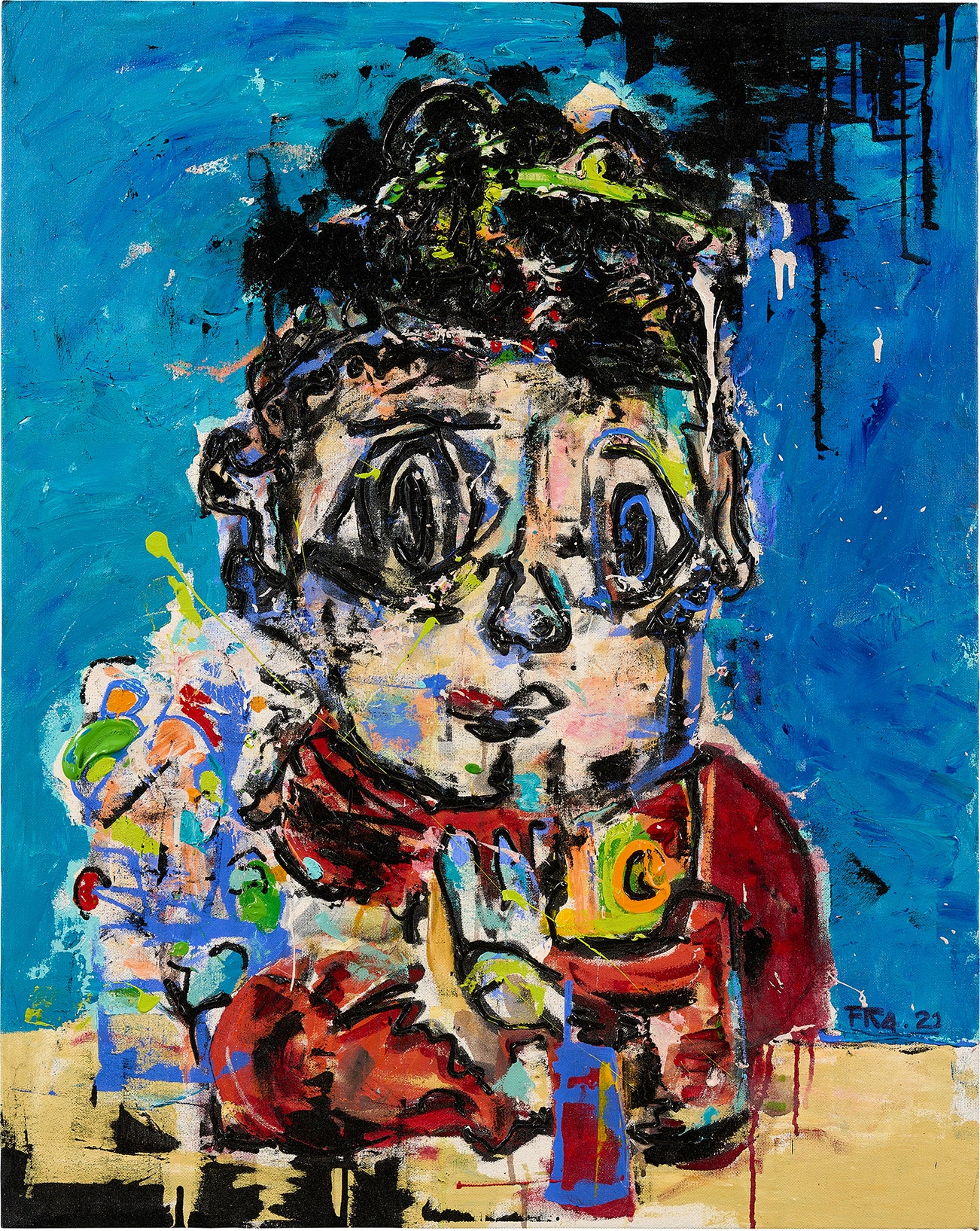signed with the artist's initials and dated 'FKA.21' lower right quadrant; further signed, titled, and dated 'Fika Ariestya Sultan. "Little Budha" 2021' on the reverse