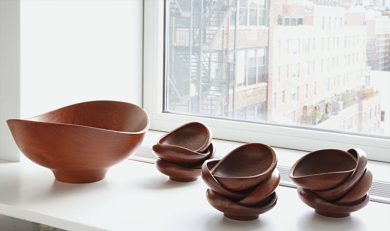 Produced by Kay Bojesen, Denmark. Underside of each impressed DESIGN/FINN JUHL/TEAK/KAY BOJESEN/DENMARK.