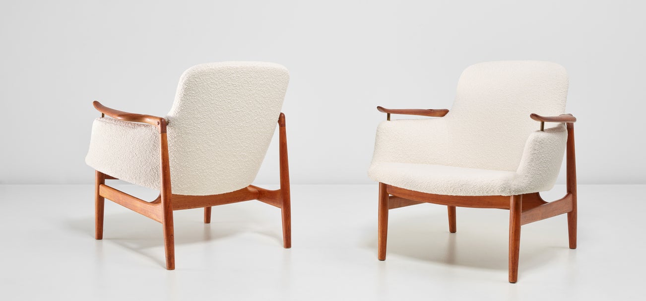 Executed by master cabinetmaker Niels Vodder, Copenhagen, Denmark. Underside of each with metal label impressed ILLUMS BOLIGHUS/KØBENHAVN and one further impressed CABINETMAKER/COPENHAGEN DENMARK/DESIGN FINN JUHL.